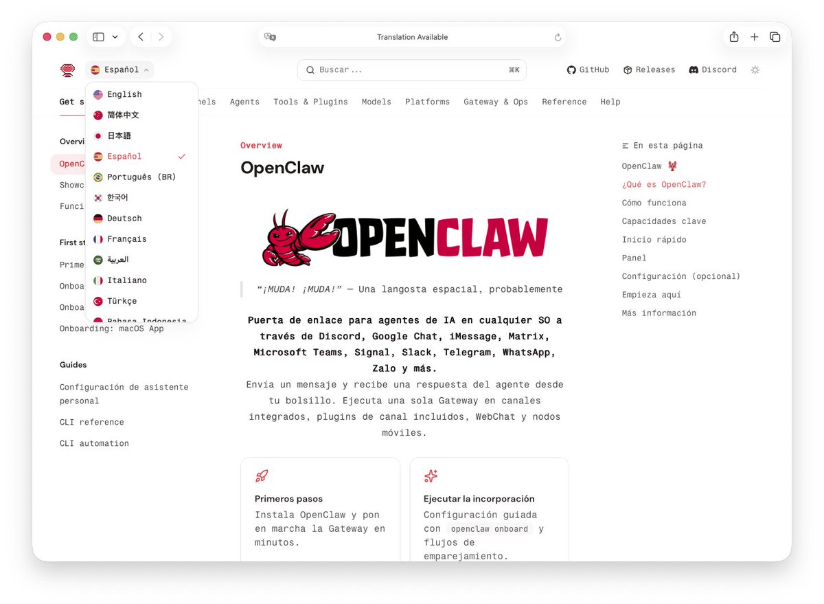 OpenClaw docs now speak 12 languages 🌍🦞