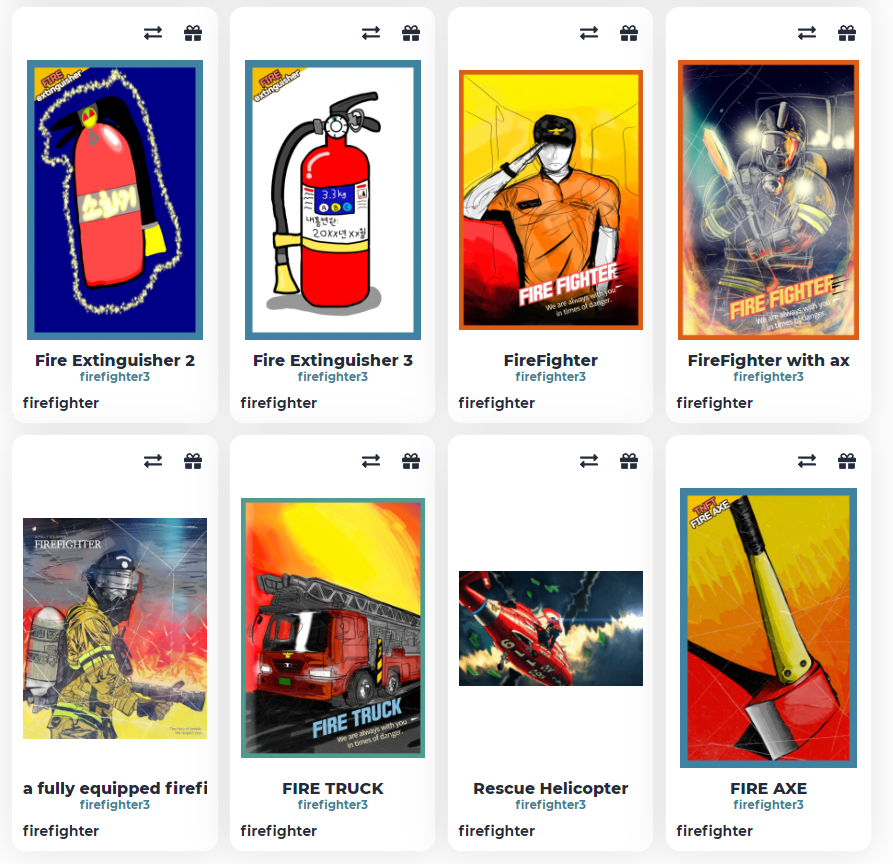 소화기 NFT를 일정수량 이상 수집하여 반납 전송하면 보팅과 실물 투척용소화기세트 발송 가능
