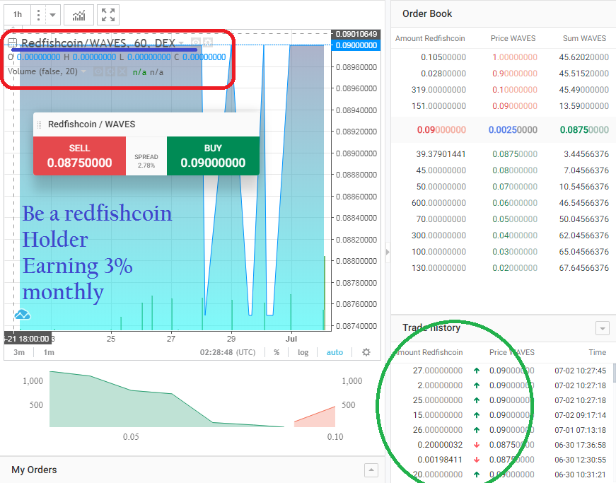 Buy Redfishcoin at 0.090 waves