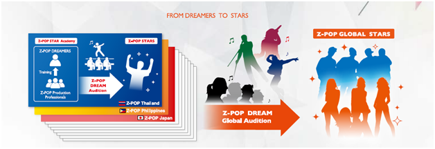 - The Z-POP DREAM project will create the “Star Infrastructure”, which will include Z POP Star Academies and Z-POP Dream Audition in 10 countries and regions in addition to Korea, working with well-proven local partners.
