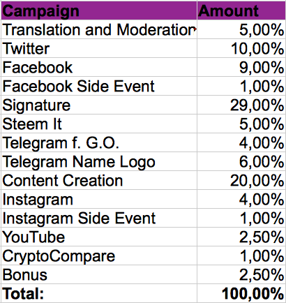 45 millions tokens will be allocated to the Bounty Pool (equivalent to 2,25Million USD)