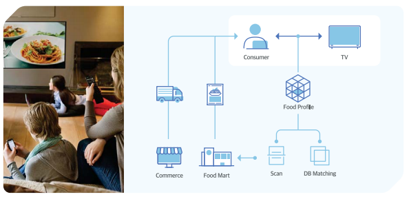 TV 와 같은 매체에서 소개 되는 푸드 레시피 및 음식들에 대한 데이터를 HInt Dapp과 연동 대상자들의 푸드 프로필과 상황 정보를 추가로 인식하여 원하는 요리에 레시피를 기반 필요한 재료와 간편식을 리스트 하여 일괄 주문이 가능케 하며, Hint Token으로 결제가 가능하다.