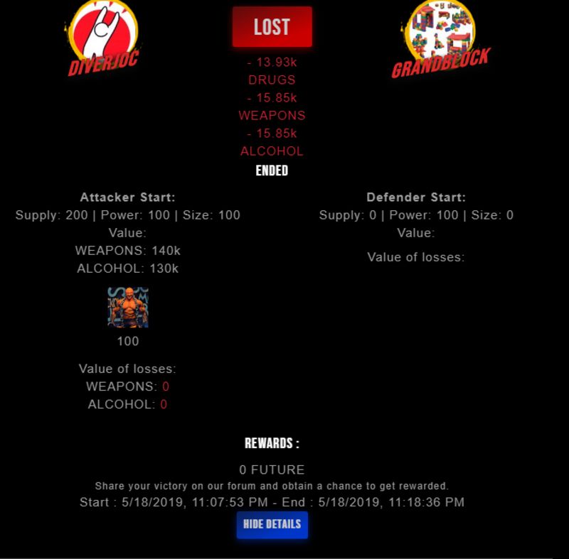 Congratulations @grandblock ! Your fight received an upvote of 2.2% from the King Dealer as incentive for your activity and as a gratitude for your support to the game.