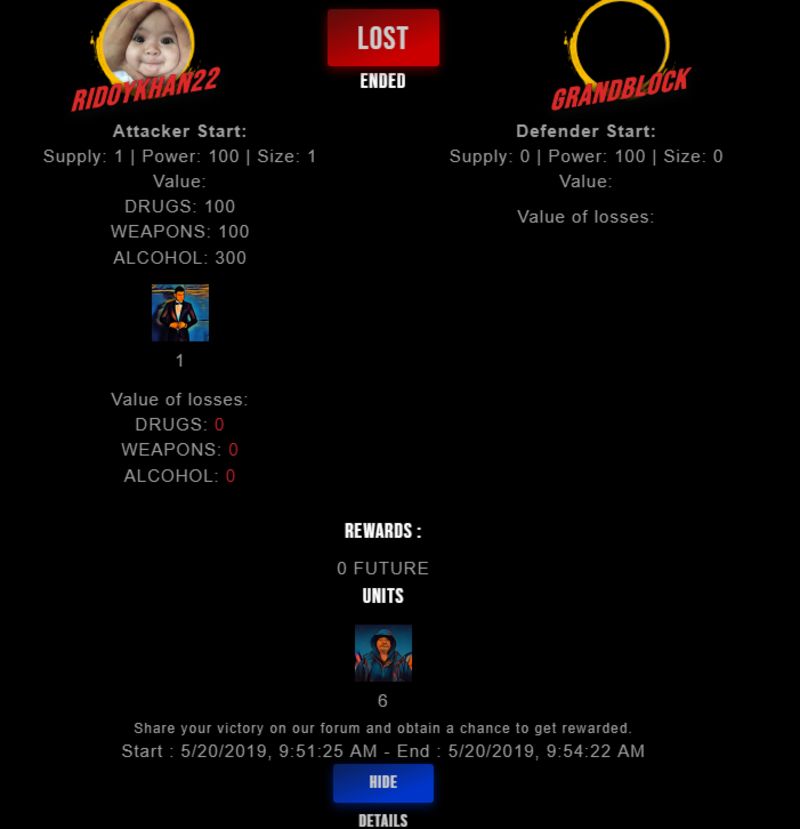 Congratulations @grandblock ! Your fight received an upvote of 2.3% from the King Dealer as incentive for your activity and as a gratitude for your support to the game.