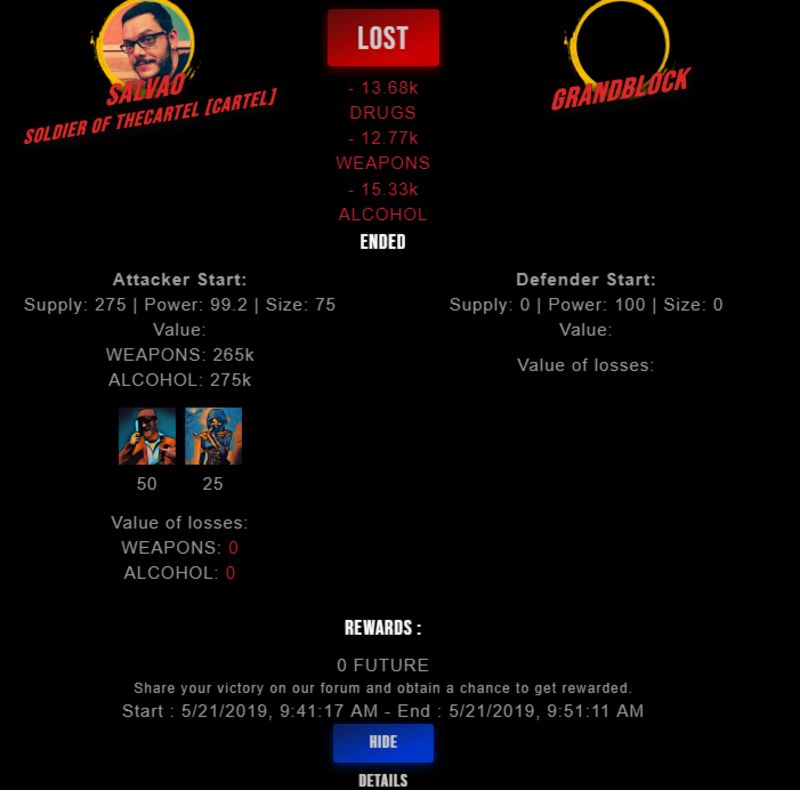Congratulations @grandblock ! Your fight received an upvote of 2.3% from the King Dealer as incentive for your activity and as a gratitude for your support to the game.