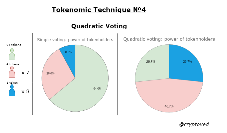 The main goal: quadratic voting eliminates the hegemony of the ruling elite and redistributes managerial functions more evenly. Such a system does not allow slide into authoritarianism and total power of the main token holders.