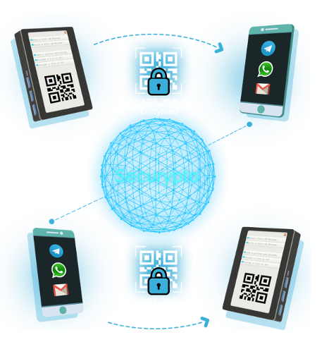 - DSG creates QR code from the encrypted data which can now be sent using any unsecured channel like WhatsApp, Telegram, email etc.