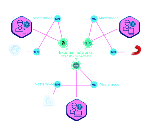 Securypto blockchain is built as a proxy connecting masternodes to external hosting facilities.