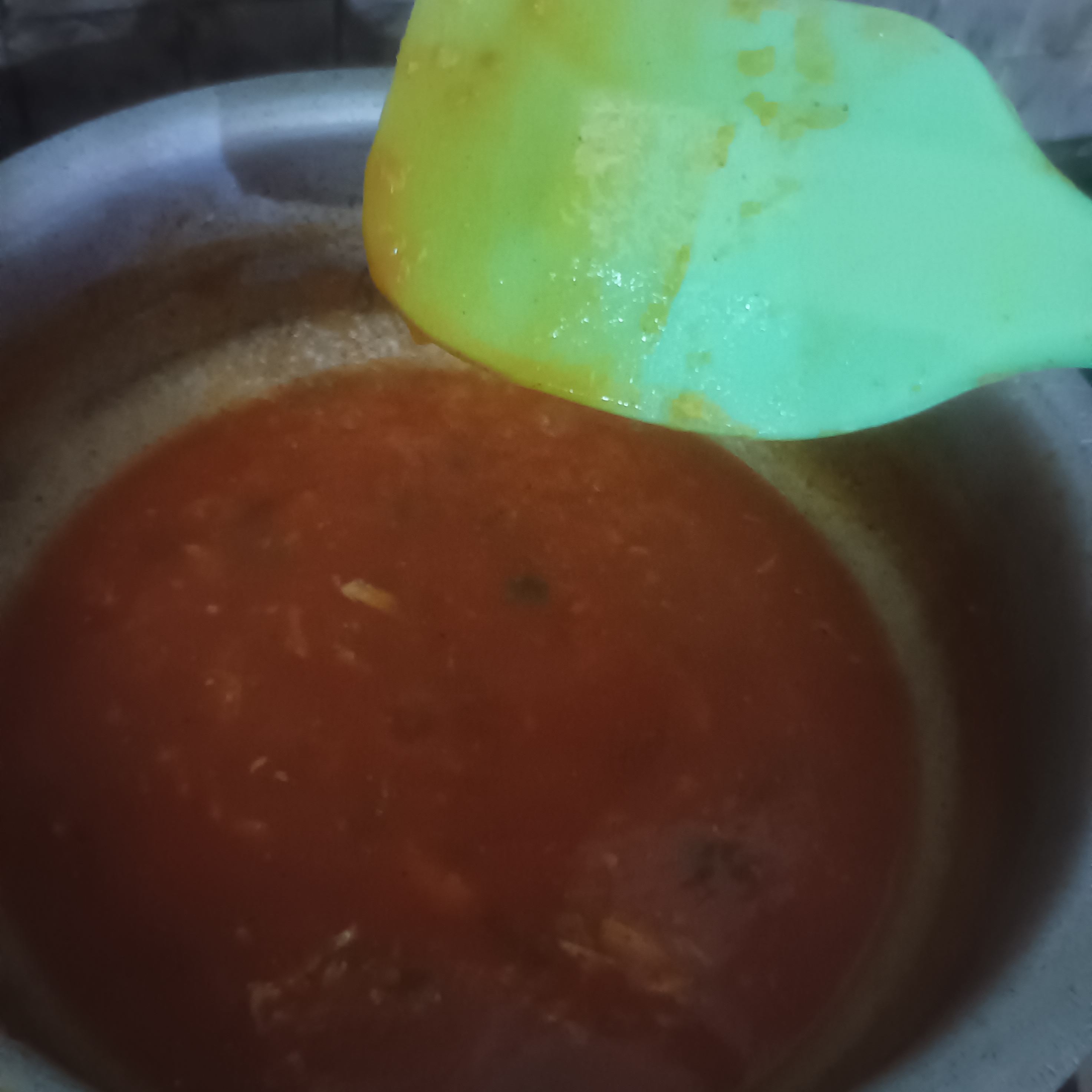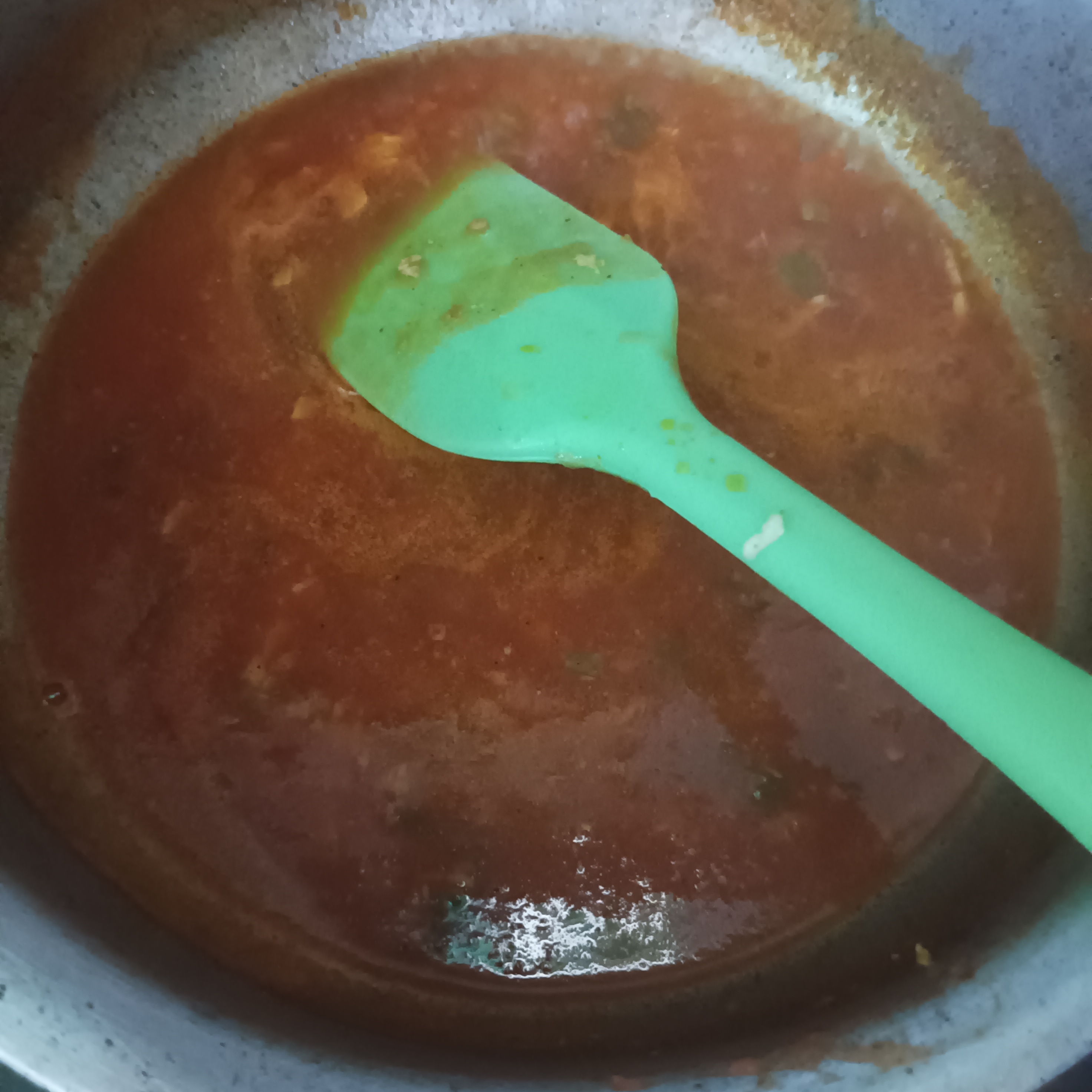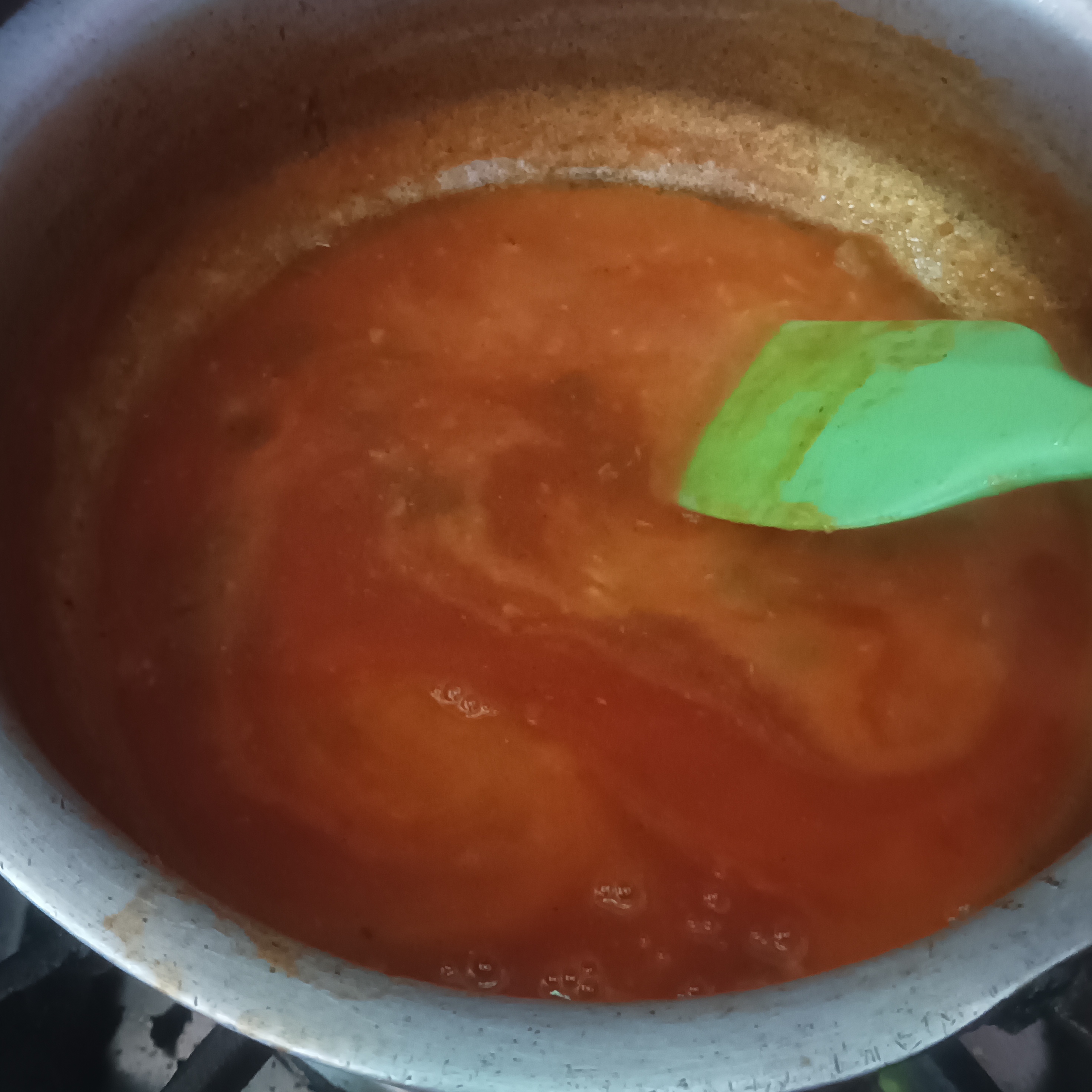 - At the meantime, we will add in smoothie mixture of boiled tomatoes , cook and added in half cup of water then side by side stirring it continuseally with the soften hands about 6-8 minutes. Need attention and proper care is must to avoid burn it.