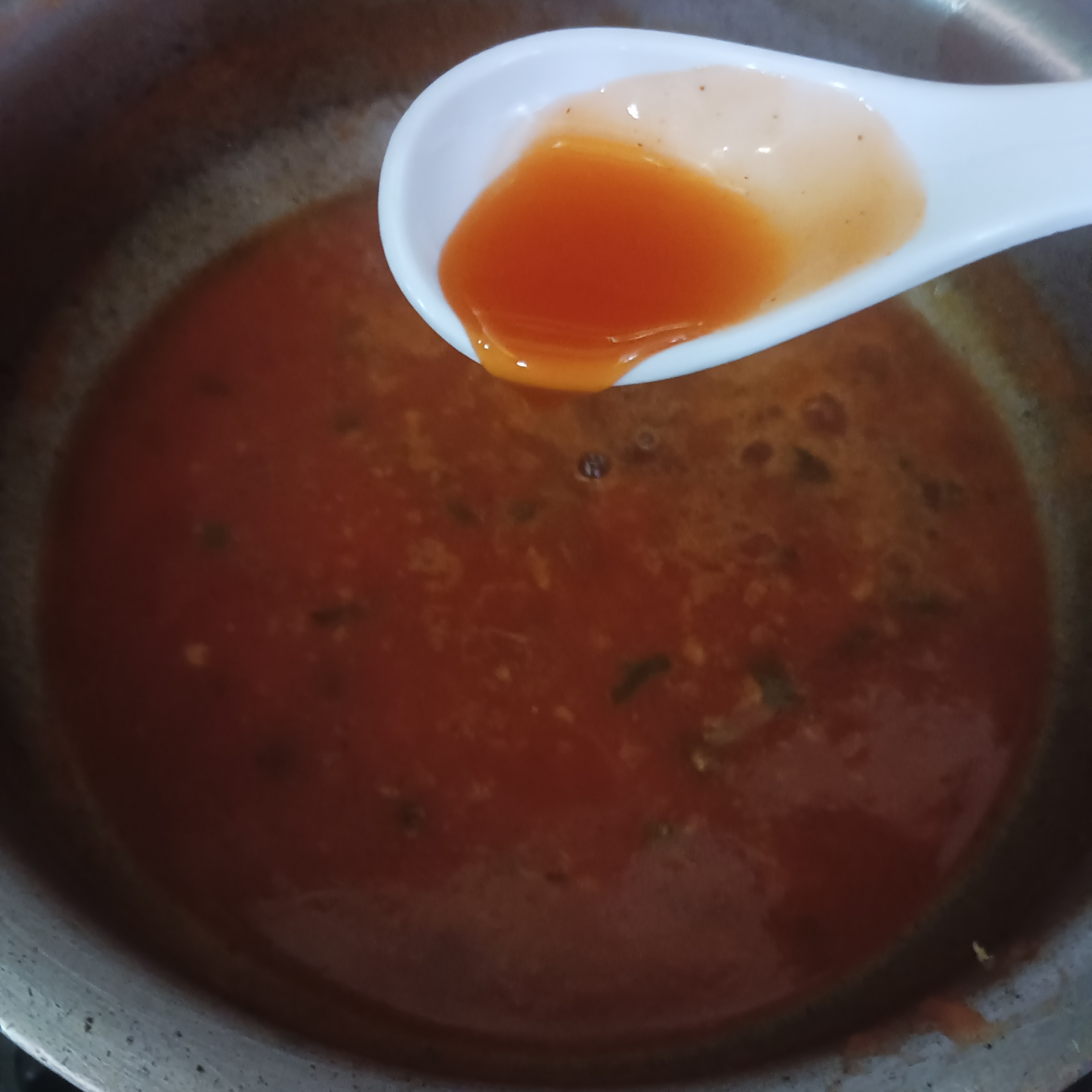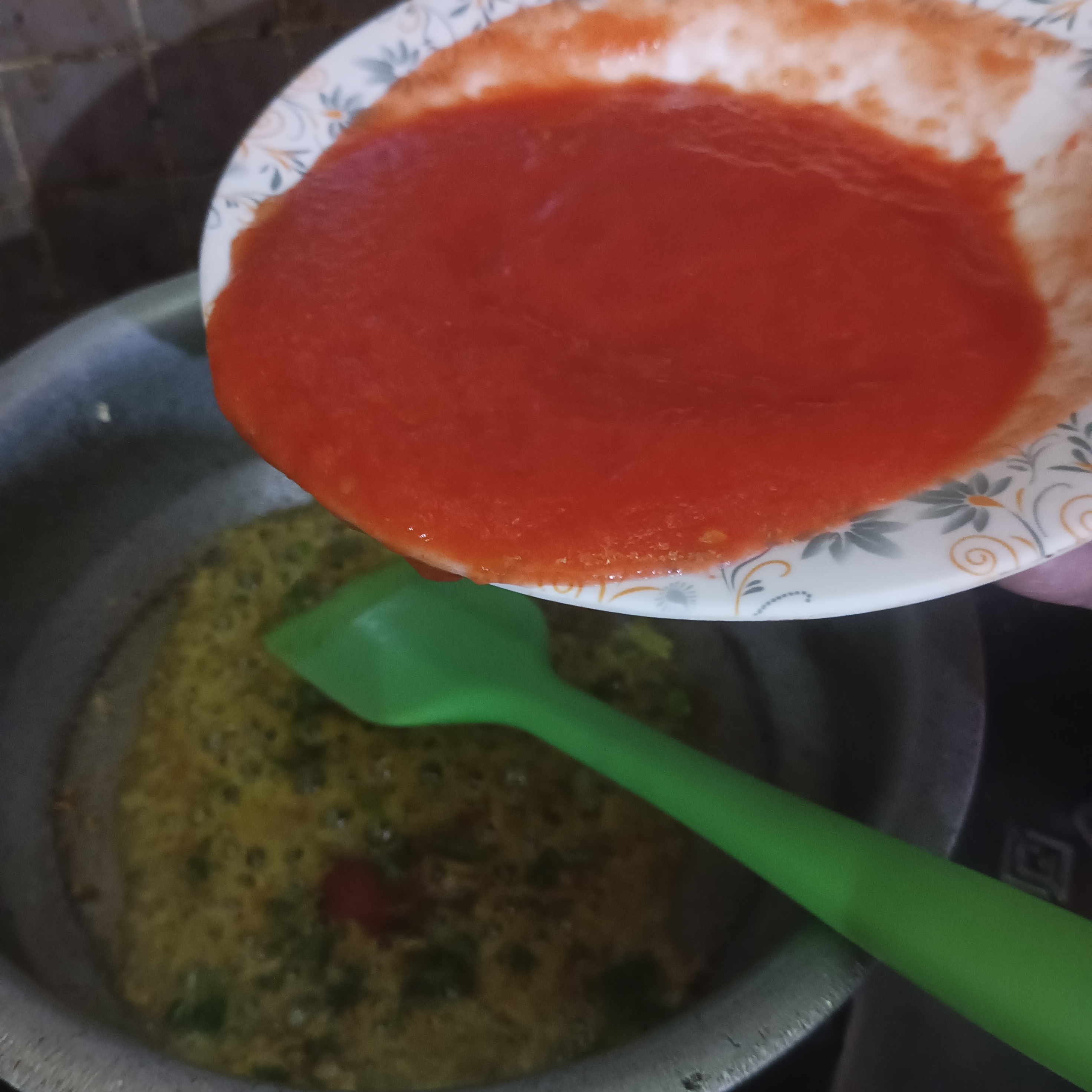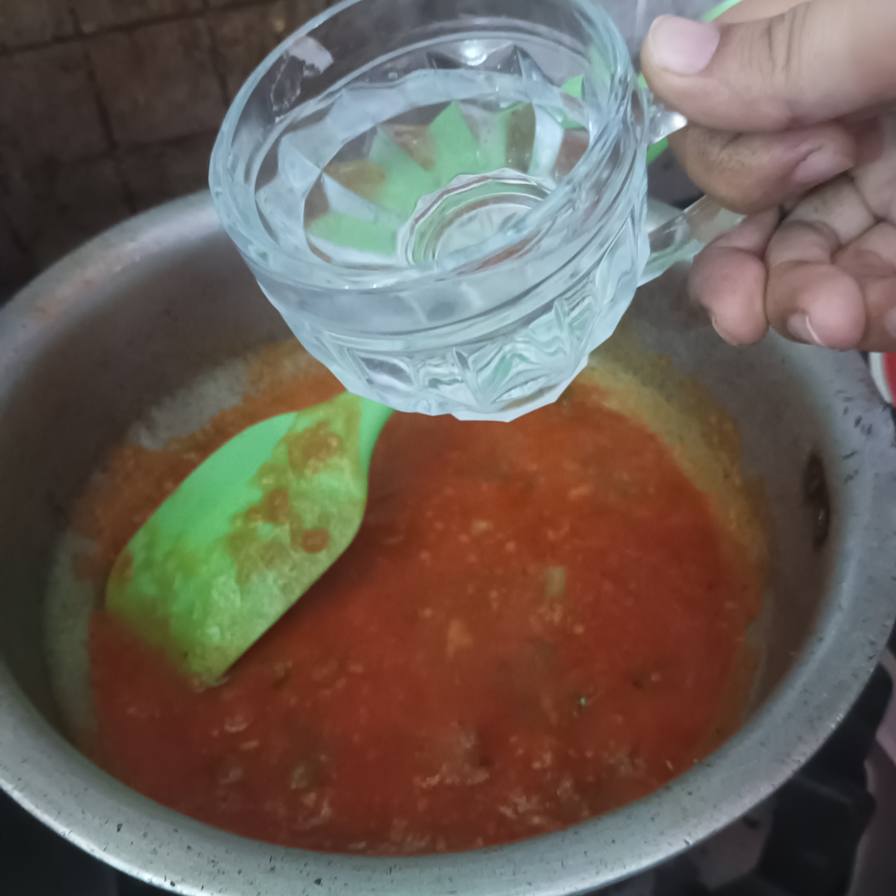 - At the meantime, we will add in smoothie mixture of boiled tomatoes , cook and added in half cup of water then side by side stirring it continuseally with the soften hands about 6-8 minutes. Need attention and proper care is must to avoid burn it.
