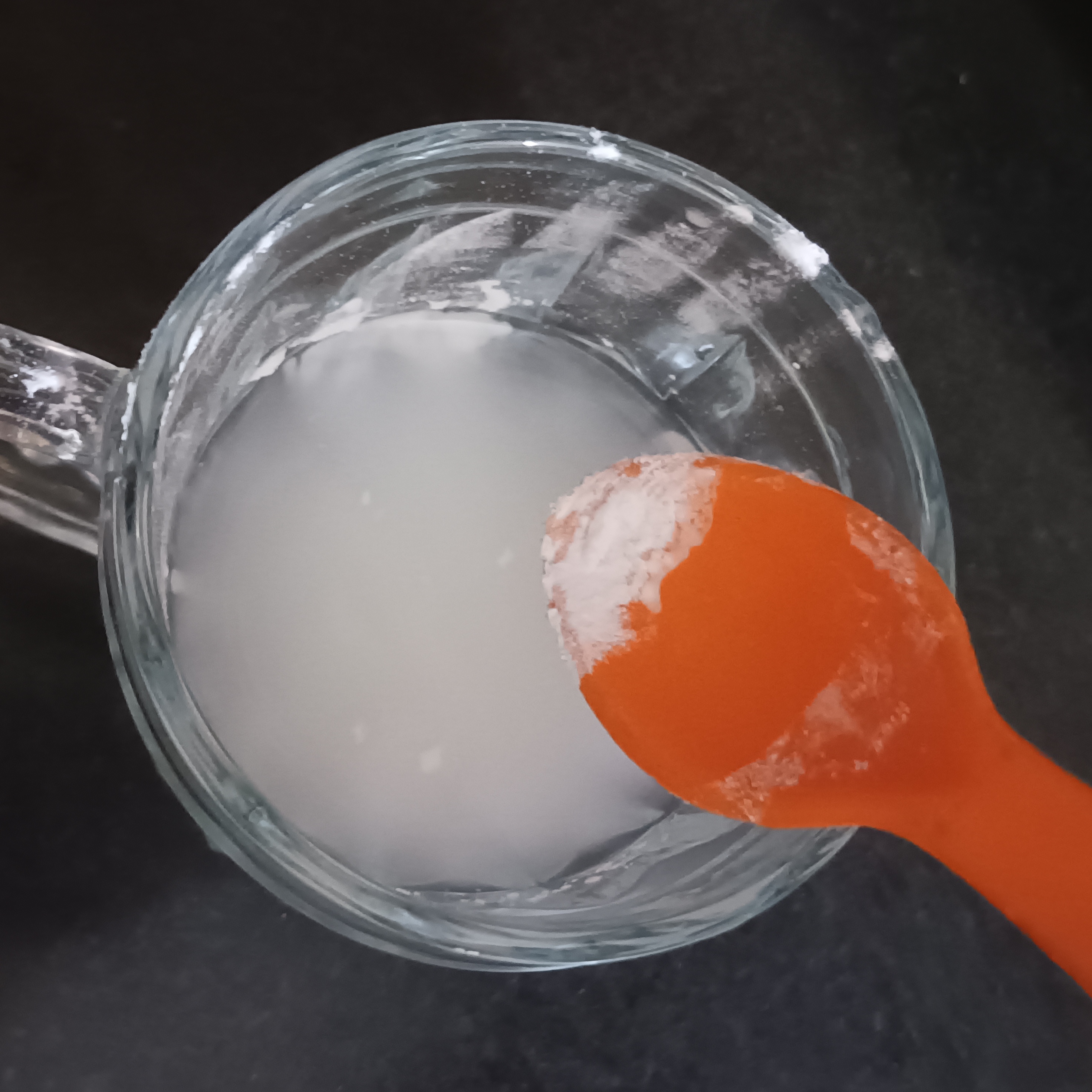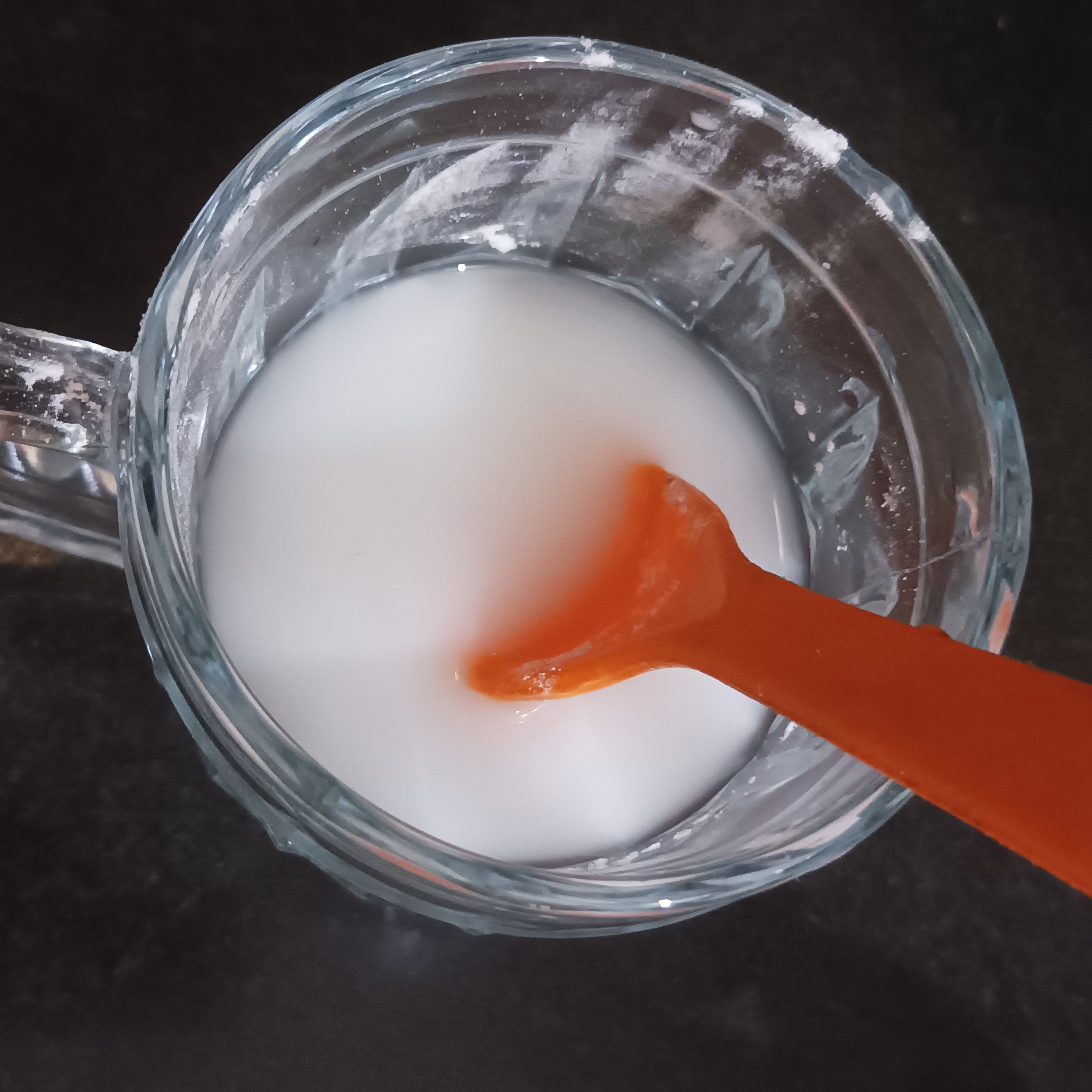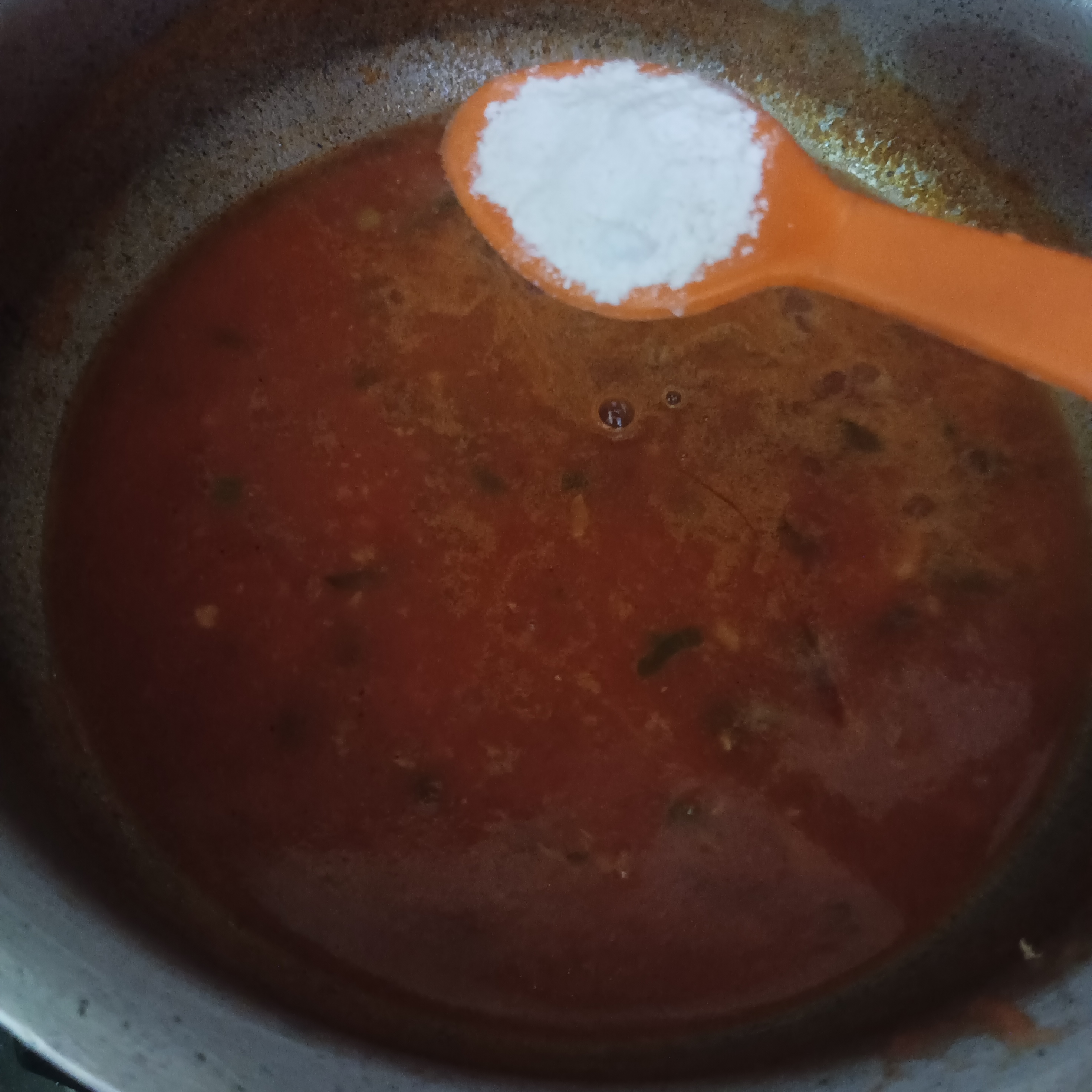 - For more smoothie, thick and silky taste and texture of the tomatoes soup we will take ¹ tsp of wheat flour or corn flour can use for the thickness in the soup. For this adding half cup of water and mixed it well for creating smoothie slurry.