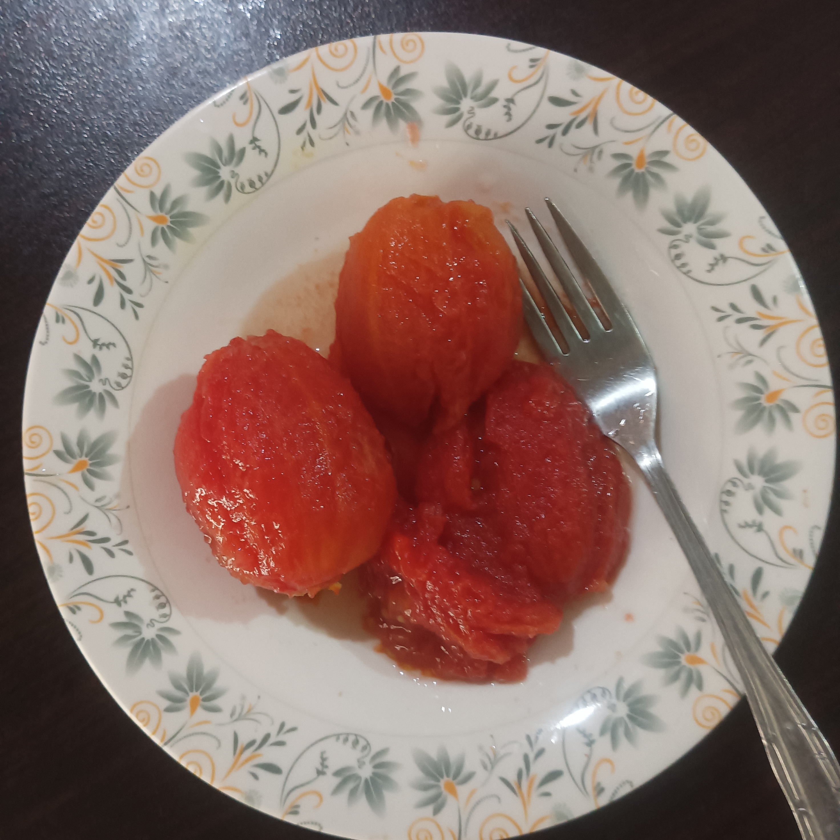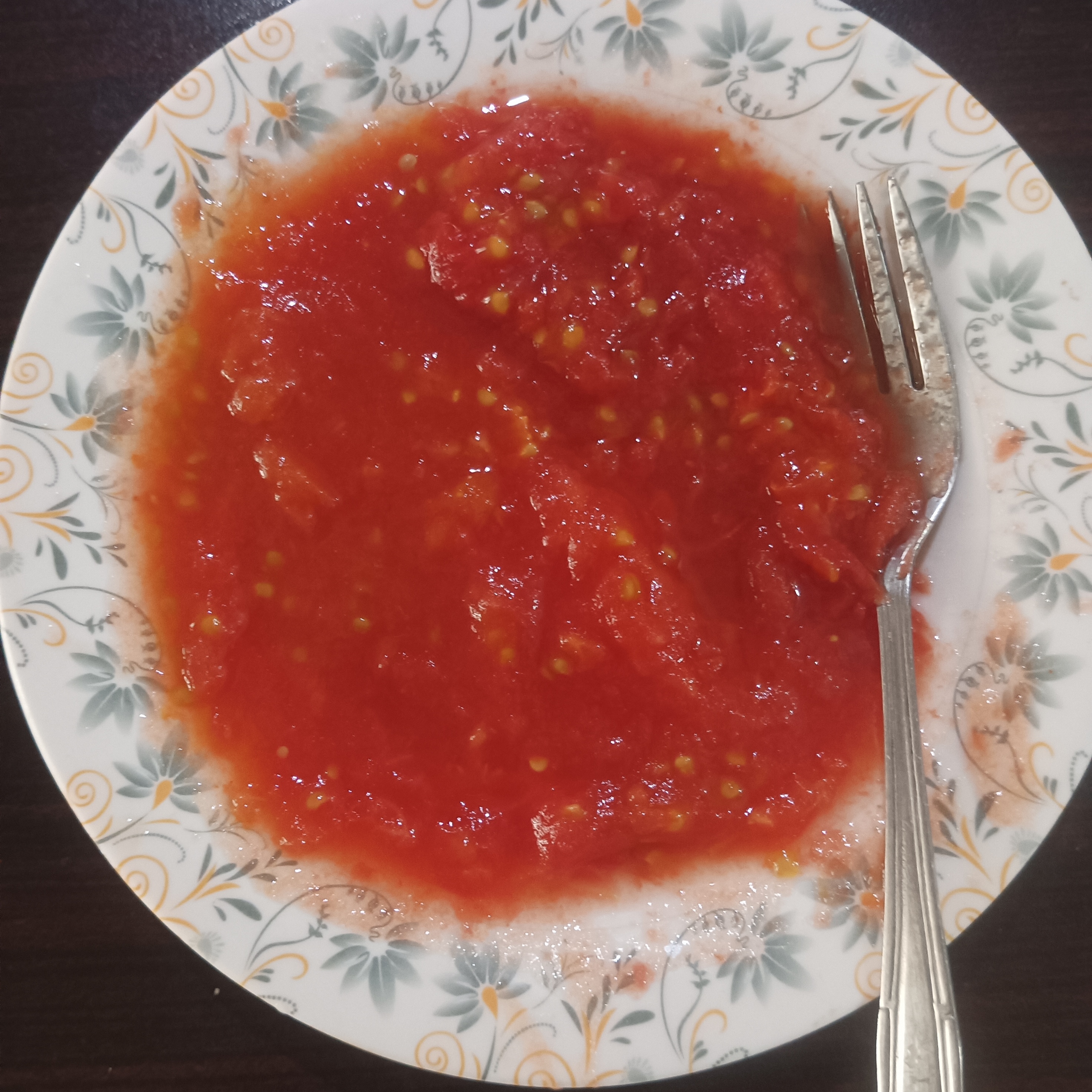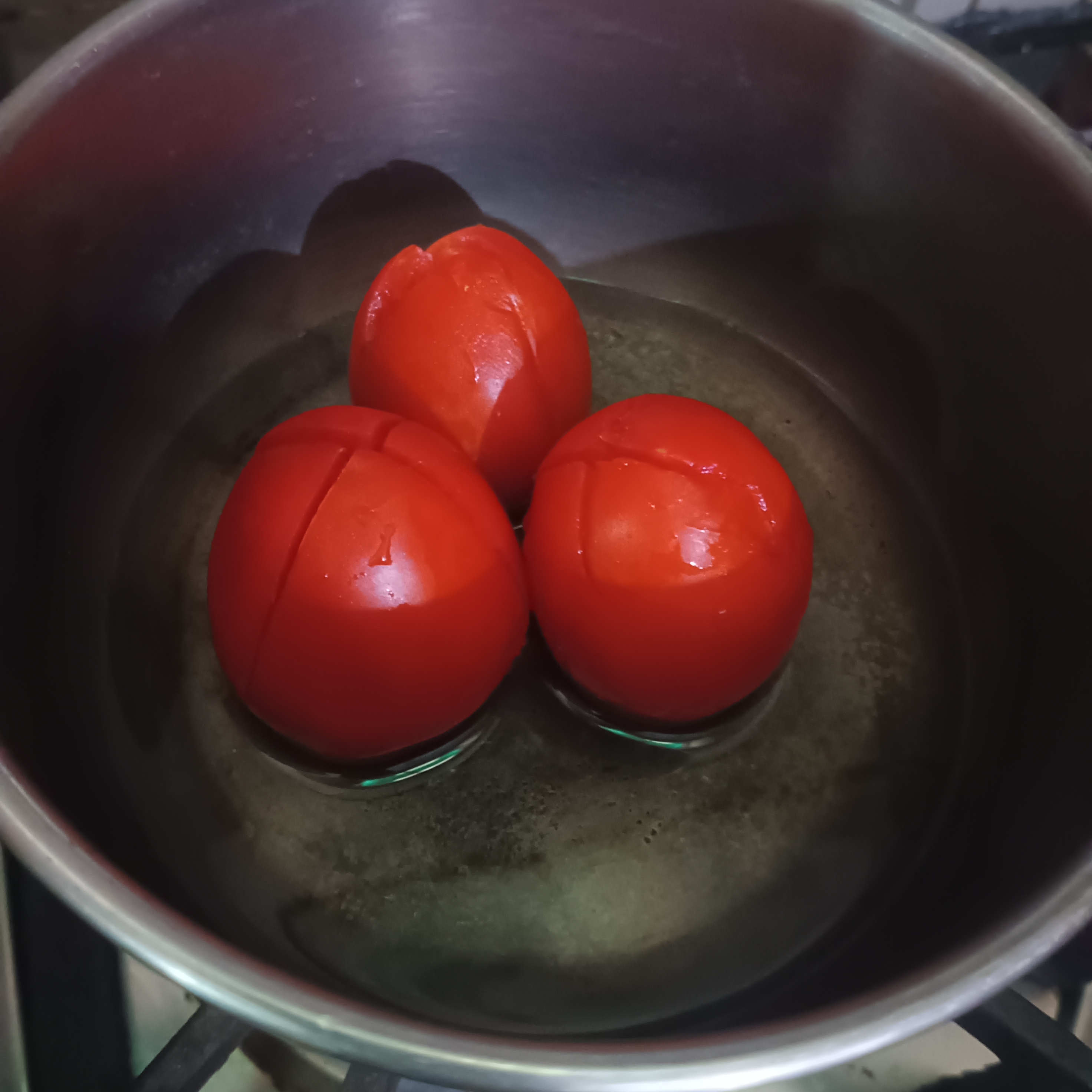 - After boiling 5 minutes, I fish out the tomatoes in the light deep plate then removed the skin of it and mashed it fork. For the smoothie texture we can also use blender to blend it .