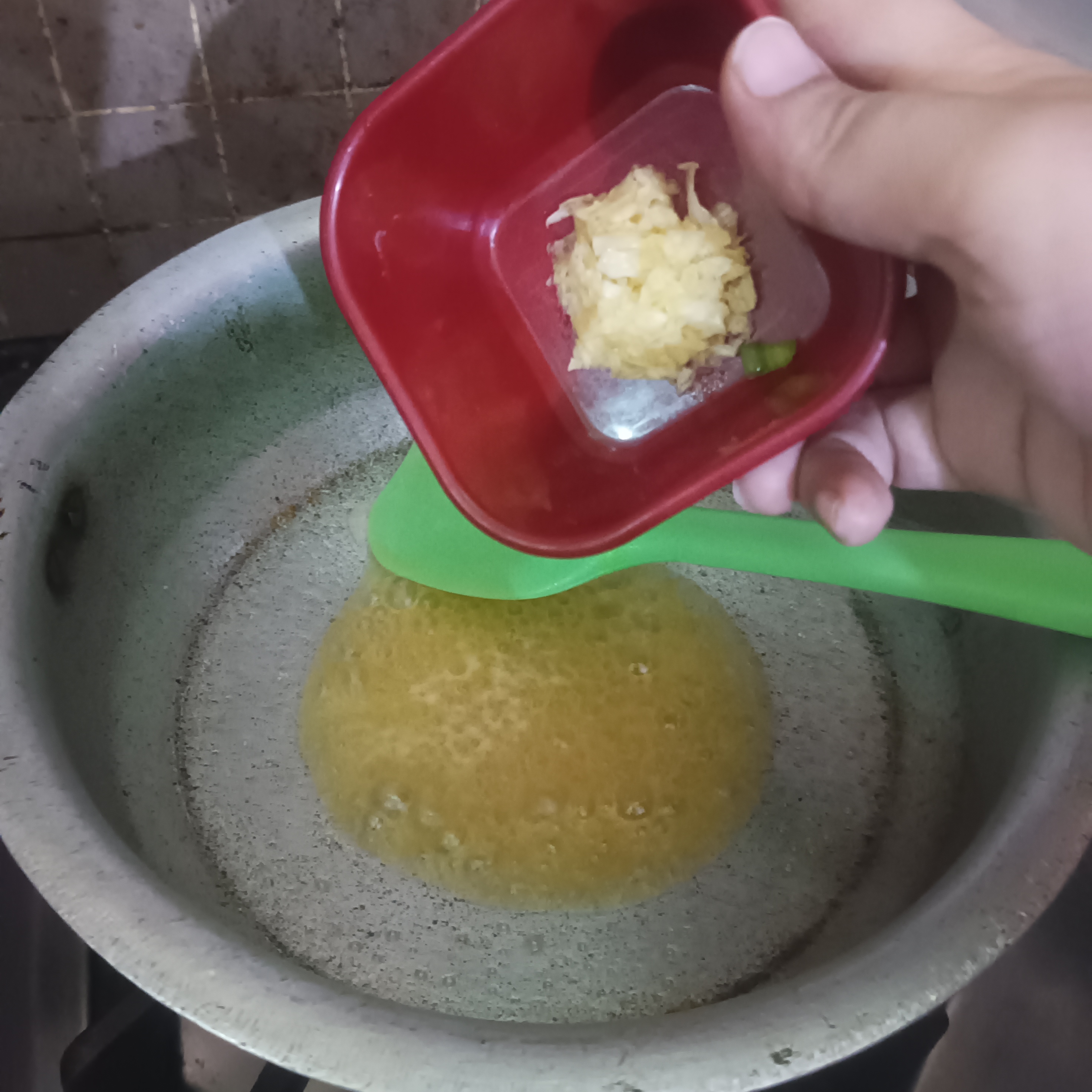 - Next process is to roasted the chopped garlic cloves and chopped scallions in the pan in which I lightly heat the butter over medium flame. We cook and stirring continuseally until the light brown cooked .