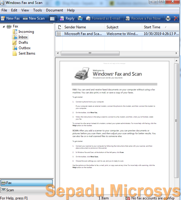 Windows Fax and Scan ialah tool yang mudah juga untuk menscan file-file dan fax kan file-file yang penting. Juga mampu menerima file-file fax daripada tempat lain. Antara windows-windows yang terlibat: