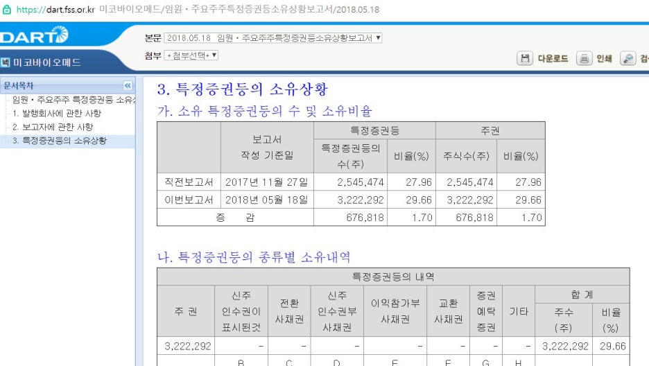 그 외 특이사항으로는 미코바이오메드의 유상증자에 참여해 지분율을 늘린 것이다. 현재 지분율이 대략 30%이고 미코바이오메드의 시가총액은 대략 874억원이니 260억원 정도의 지분 가치를 지녔다고 봐야할 듯하다.