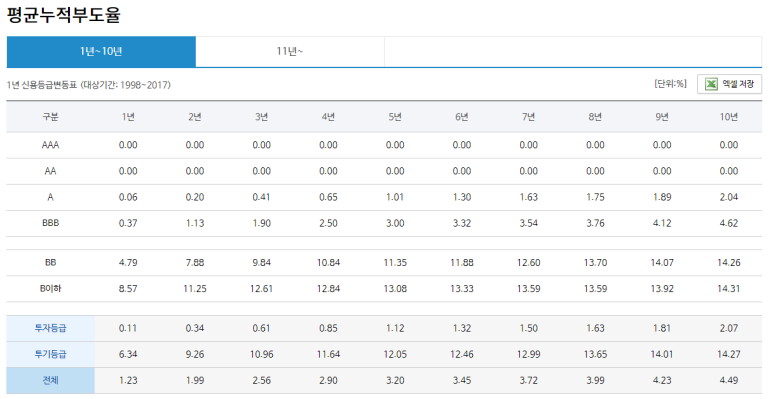 둘째, 신용등급은 부도율로 말해야 합니다.