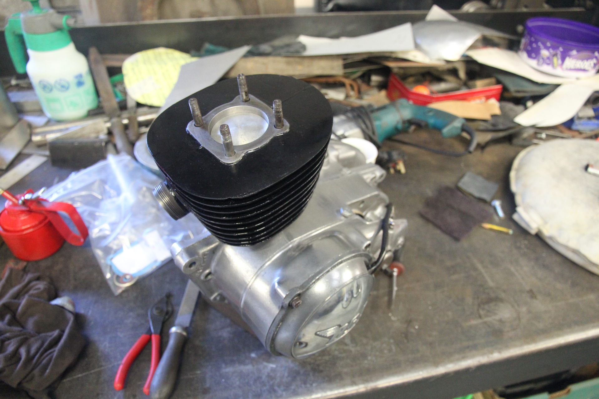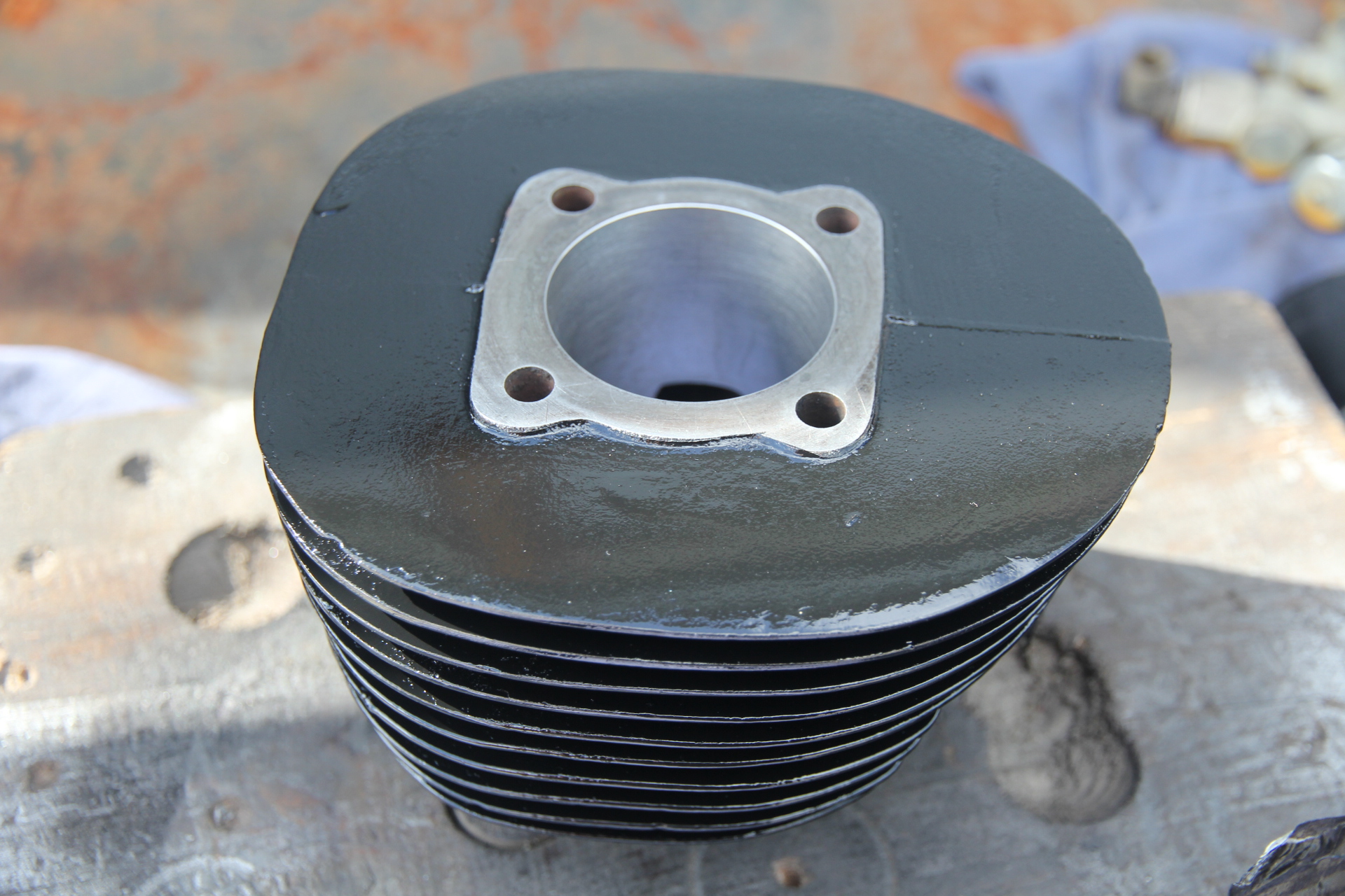 Cylinder has come back from the machine shop ready for a new piston and after a coat of new heat proof paint it's looking near to new.