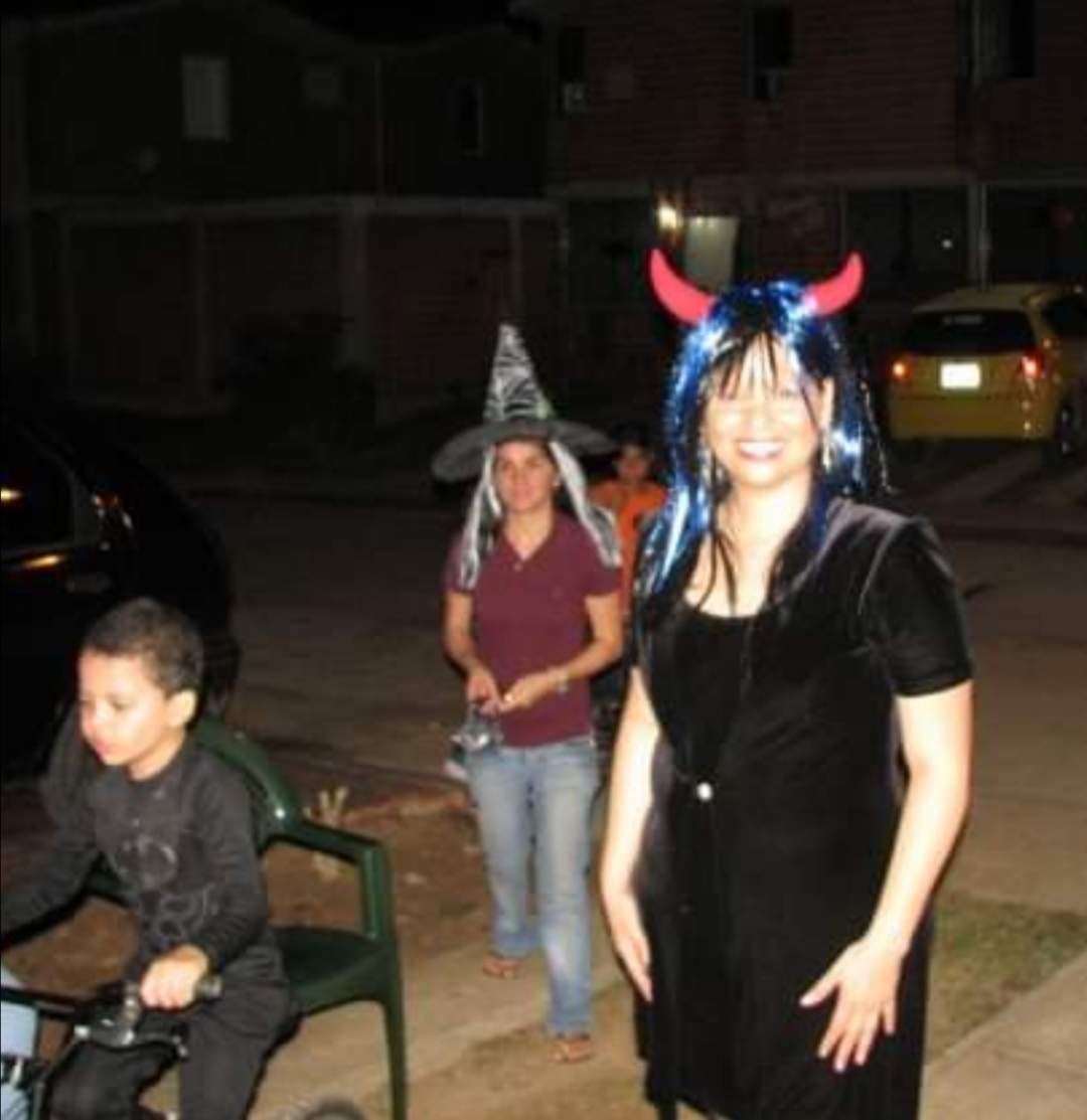 Era halloween y por mi cuadra, se acostumbraba a dar dulces y caramelos a los niños, mas avanzada la noche, salíamos disfrazados y seguíamos compartiendo los adultos junto con los más pequeños. Ese día mi esposo tenía una máscara y yo me vestí de negro, con una peluca que tenía unos cachos (era una diablita), cuando salimos, mi esposo asustaba: "arggghhhh" y todos salían corriendo, menos uno, Nicola de 6 añitos, quien se acercó y me grito: "mi vecina es una vaca", jajajajajaja... A todos nos causó muchísima gracia..!! Porque el decía que no daba miedo... Los padres estaban apenados, porque evidentemente tenía unos kilos de más, pero nada, la ocurrencia del pequeño al ver los cachos y compararlos con el animalito, es tema de risa hoy en día..!!