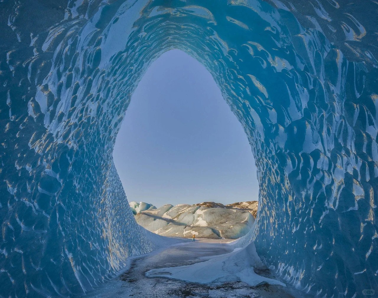✣蓝冰洞是全天然形成的,它的形成与冰川的消融有着密切的联系,主要受到冰川融水侵蚀的作用。