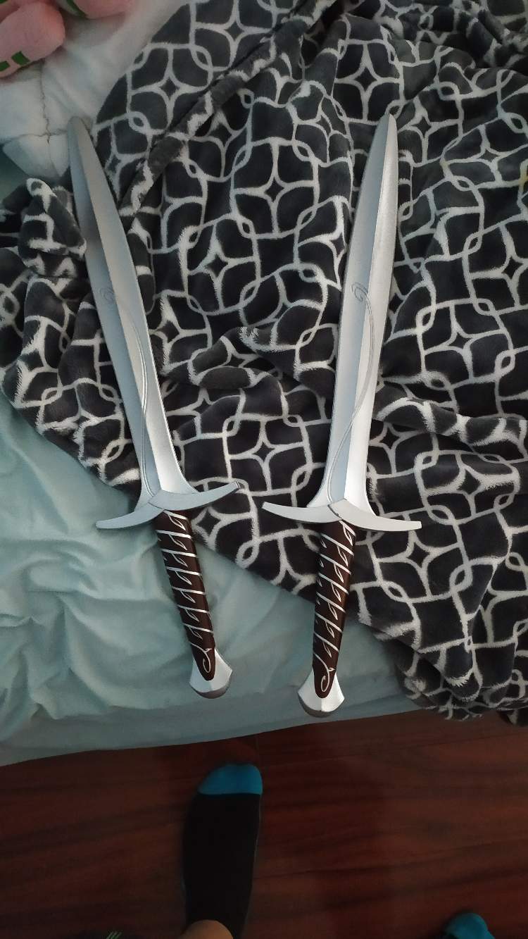 The 2 Hobbit swords were perfect for him.