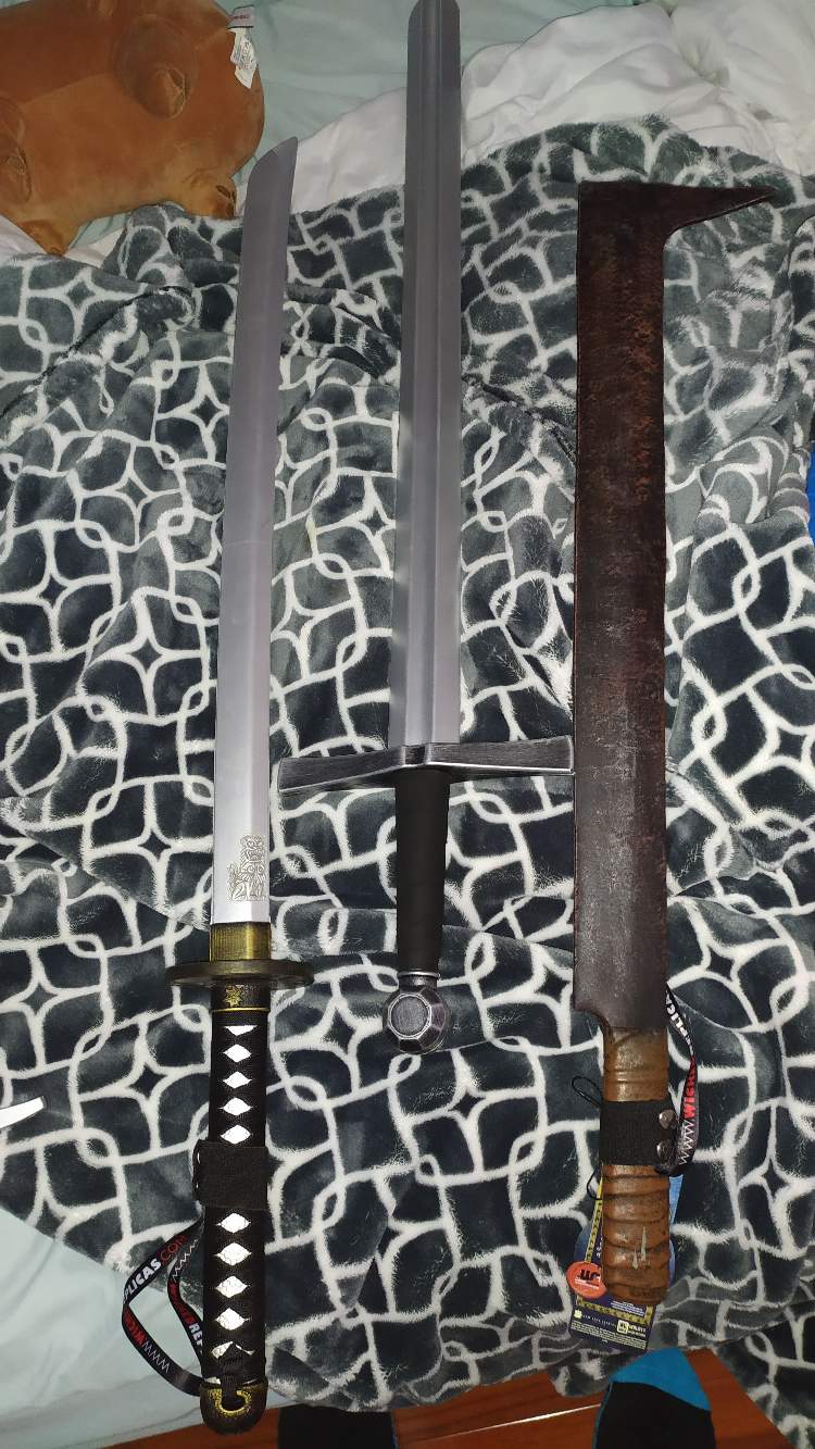 The store responded very quickly with, we don't have a beginner set, but we do have these, Lord of the Rings, Hobbit swords that would be light enough.