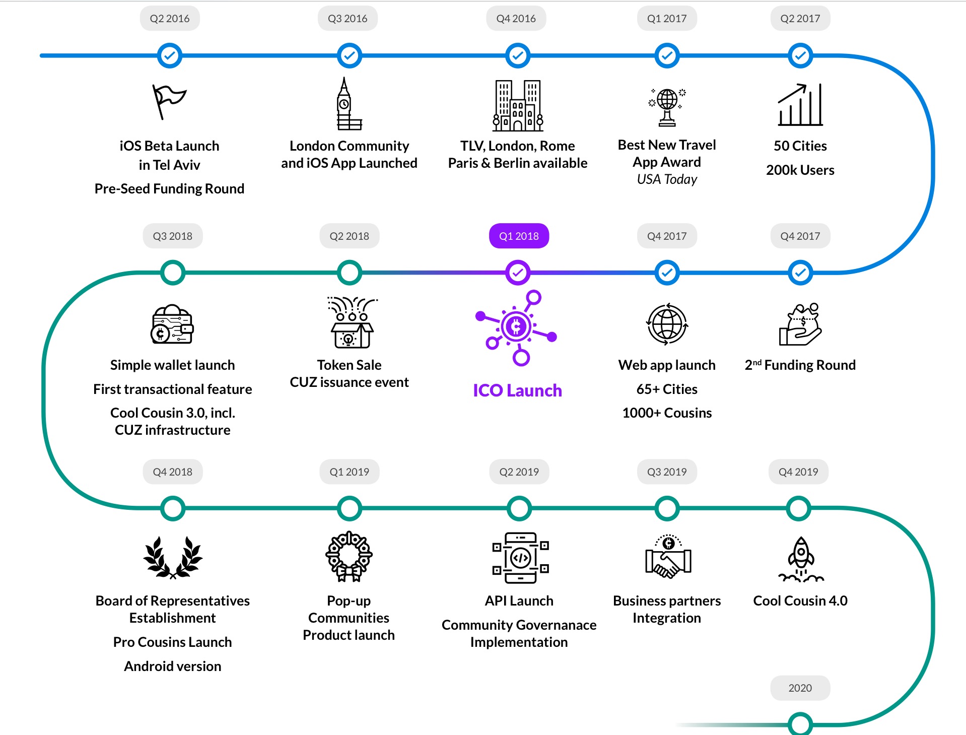 Öncelikli olarak token kısaltması CUZ olarak belirlemiştir. Şu anda büyük yatırımcılar için Özel Satış devam etmekte olup sadece 24 saat sürecek olan Ön Satış 10 Nisan 2018 tarihinde Türkiye saati ile 13:00'da başlayacak ve yatırımcılara ön satışta %50 bonus verilecek.