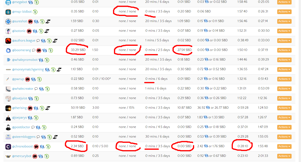 kırmızı ile çizdiklerime dikkat edirsek kayb etmeyiz dimi? en çok none/none olanalar üstünlük vermemiz ve oy vermesine az zaman kalmış gönderilen sbd ve steem hacmine bakmamız lazim. Ben karlı olub olmayacağını böyle biliyorum.