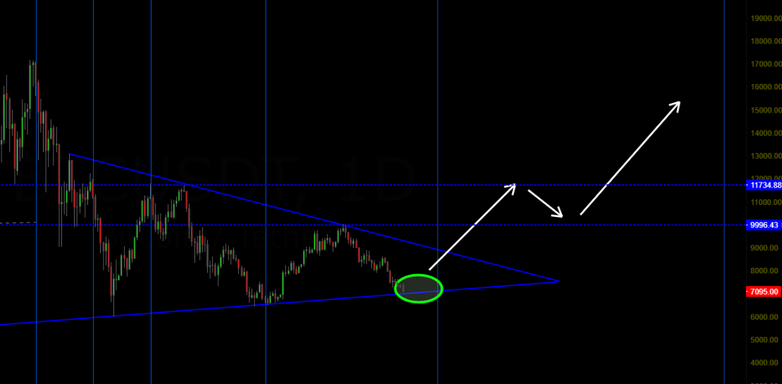 Yaklaşık 2 haftadır bitcoinin 7000-7100 dolar arasına geleceğini ve oradan tekrar yükselişe geçeceğini düşündüğümü söylüyorum. Sonunda beklediğim noktalara gelmeye başladı ve ben de kademeli olarak alımlarımı gerçekleştirmeye başladım.