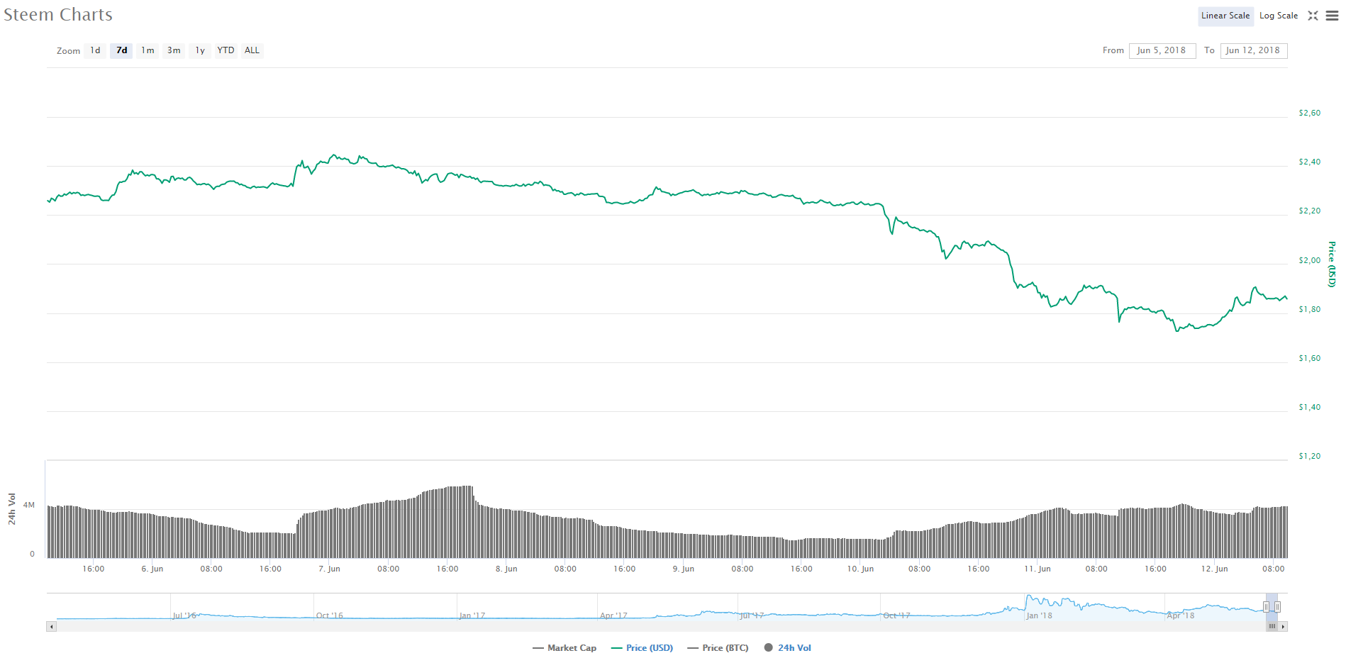 Steem'in 1 haftalık grafiği.