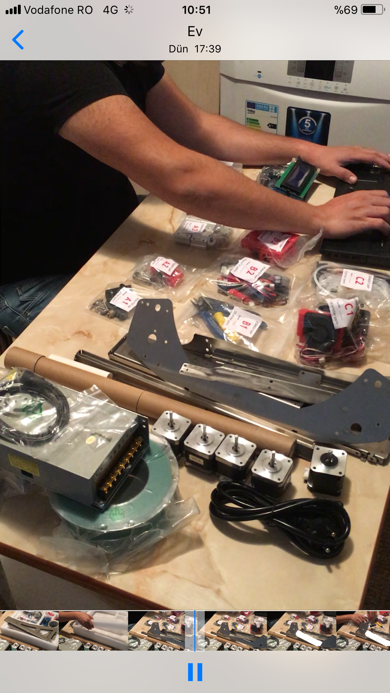 - 3D yazıcı kolisinin açılımını ve montaj sürecini kaydetmemi