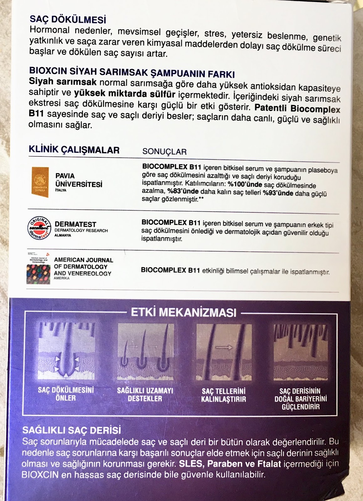 Tam vaat ettiği gibi saç dökülmesini oldukça azalttı. Bu bakımdan bu dönemi iyi atlattım denebilir. Saç tellerimi kalınlaştırması gibi bir etki gözlemlemedim. Ama saçlarım daha canlı ve sağlıklı görünüyor o doğru.