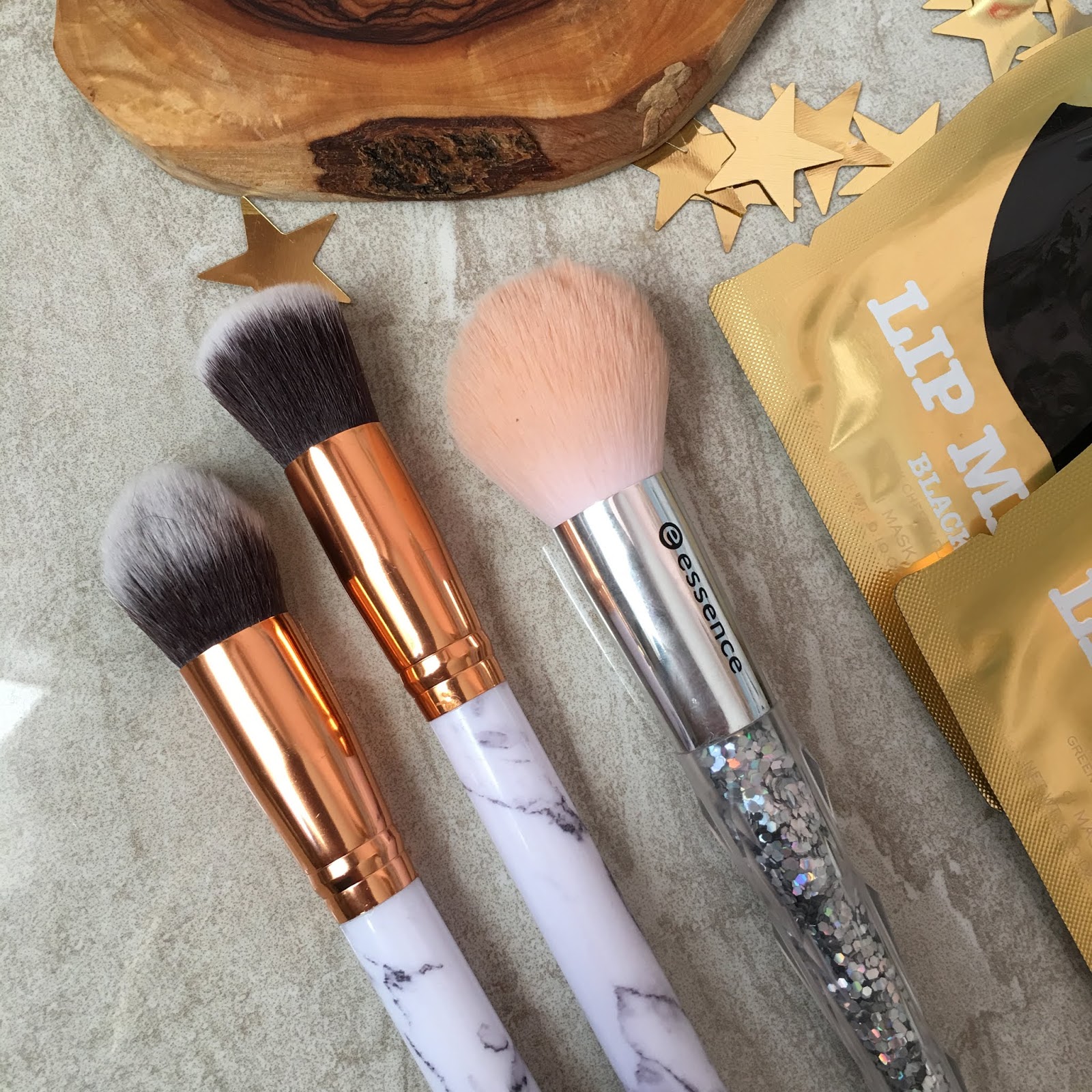 Mermer fırçalar Kadıköy Çilek sokakdan, tanesini 10 TL'ye aldım. Bunlar kullanmalık değil fotoluk ama kullanılır mı tabi ki. Diğer fırça Essence koleksiyonlarından birinde çıkmıştı. Bazı Watsons'larda vardı aradım, buldum ve aldım.