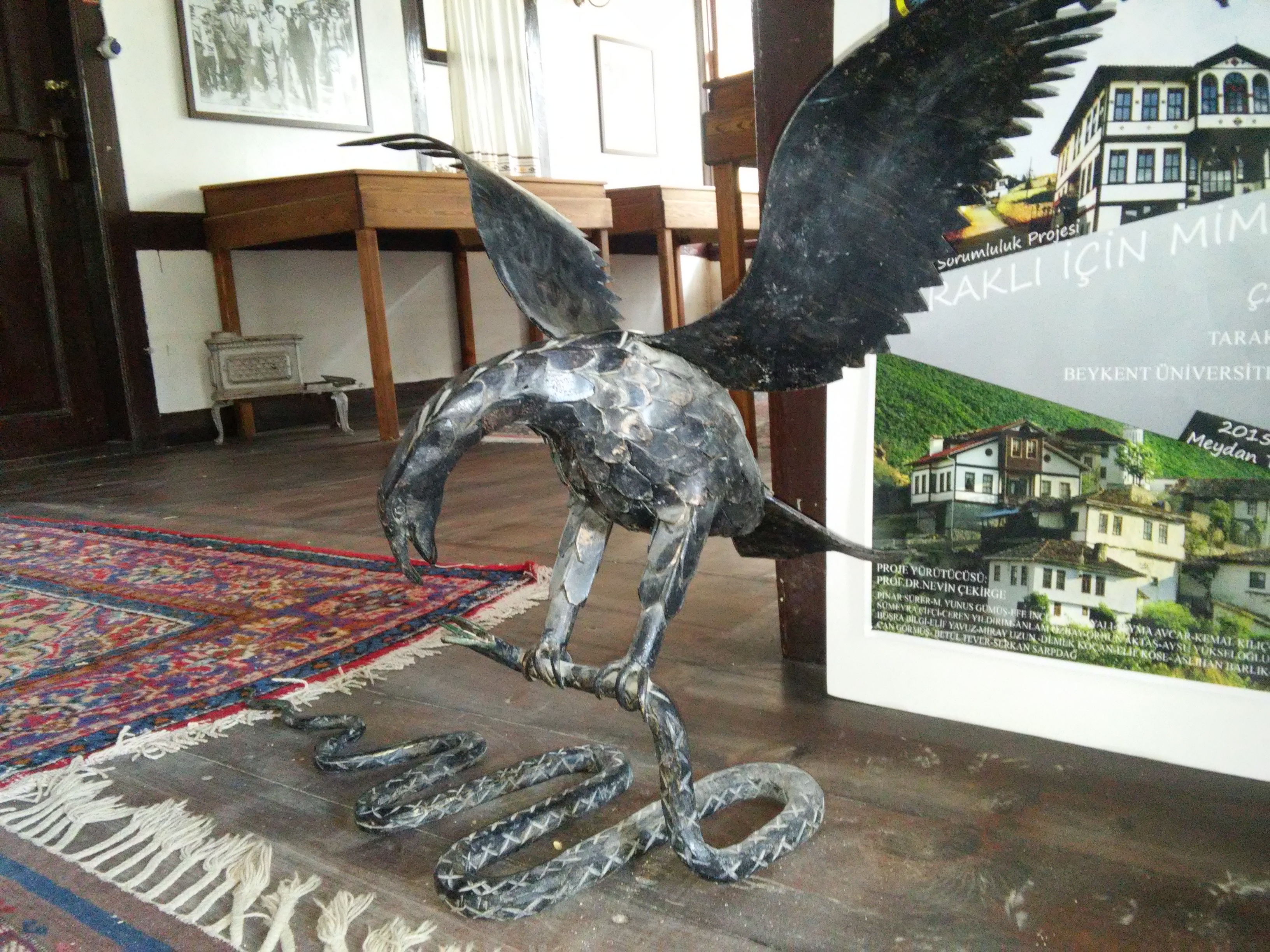 Evin Girişinde bulunan kartal ve yılan heykeli.
