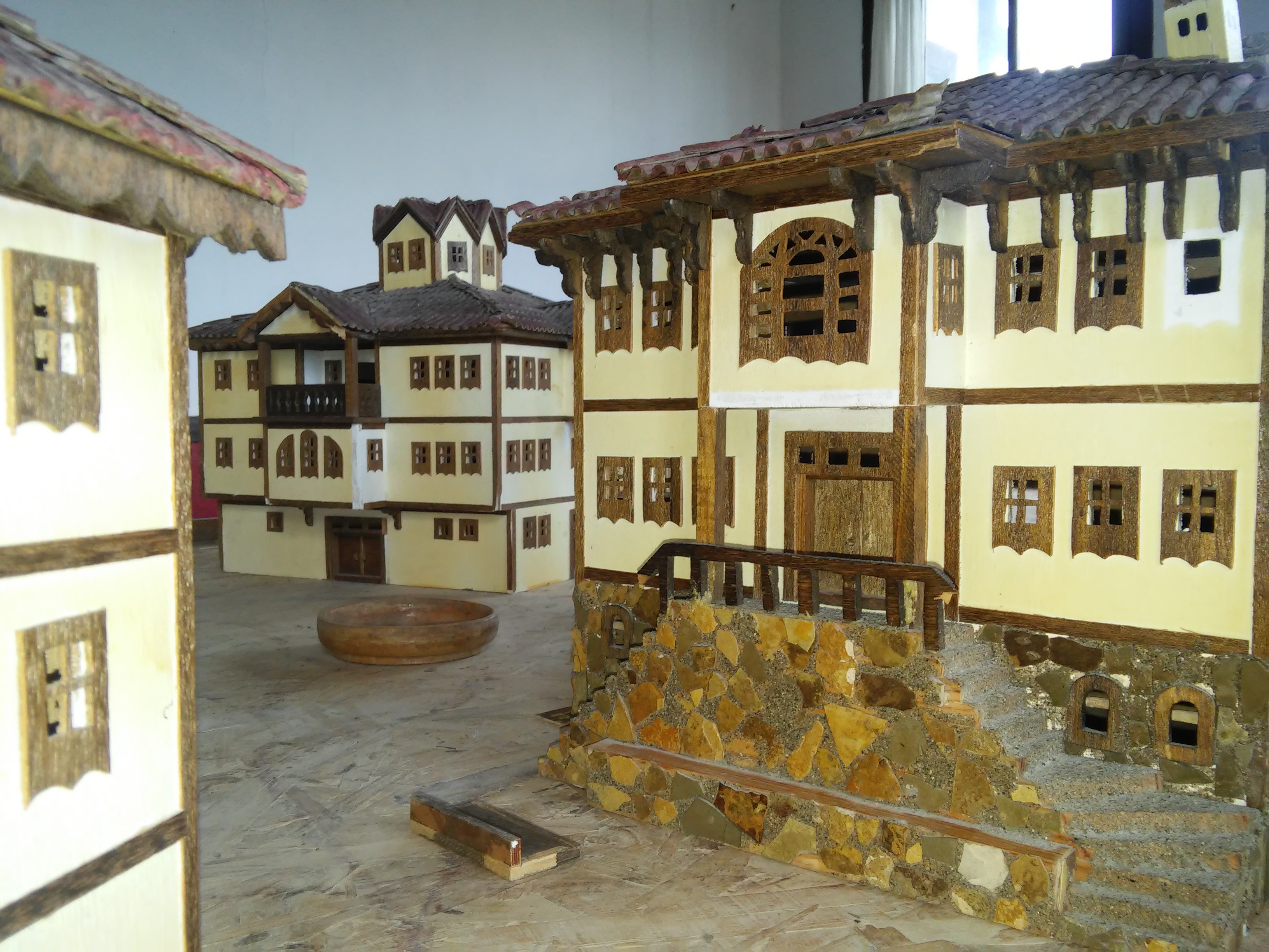 Bu minyatür evlertaraklı tarihi evlerinin minyatürleri, arkada görünen çatısı sekizgen çatısı olan evin gerçeği aşağıdaki görsellerde mevcut.