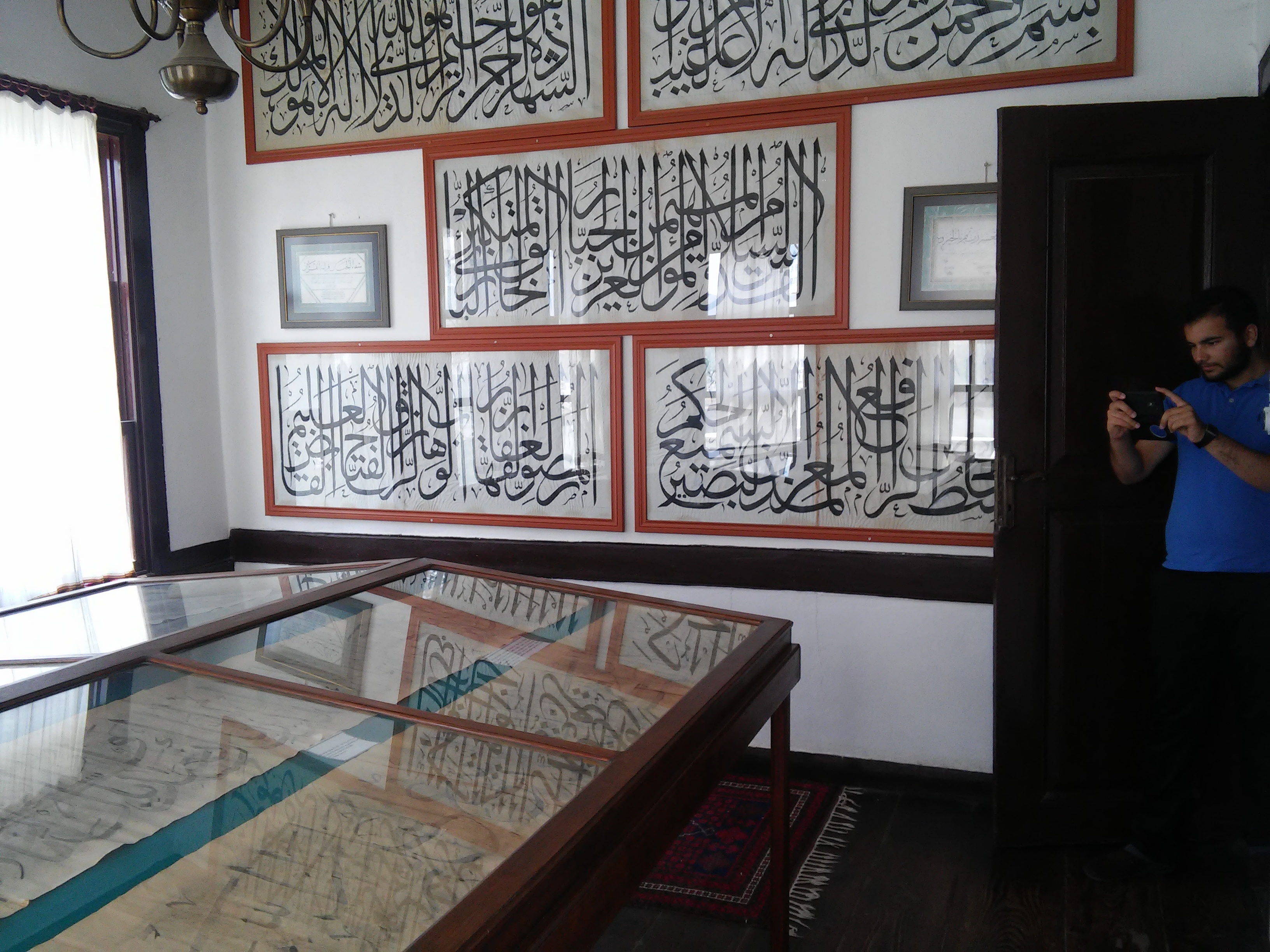 Evin bir odası zamanın hattatlarına ayrılmış, tamamı el yazması olan hilyelerin orjinal halleri sergilenmekte.