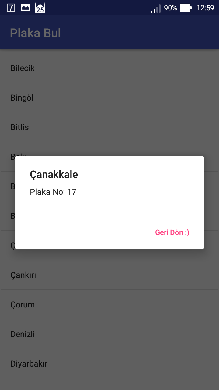 Bu uygulama ülkemizdeki 81 ili listeliyor ve istediğiniz bir ile dokunduğunuzda size o ilin plaka numarasını geri döndürüyor. Bu kadar basit :)