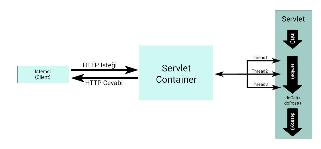 Servletler Java web ve uygulama sunucularında (server) çalışan, istemcilerden (client) gelen istekler ile HTTP sunucularındaki veritabanları ve uygulamalar arasındaki ara katmandır.