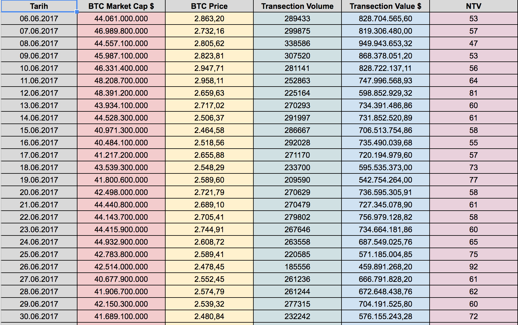 Not: NTV rasyo analizinin olumsuz tarafı ; dikkate alınan kullanım değeri sadece blockchain ağında transfer edilen BTC’leri dikkate alması. Walletlarda bekletilen değeri dikkate almamasıdır.