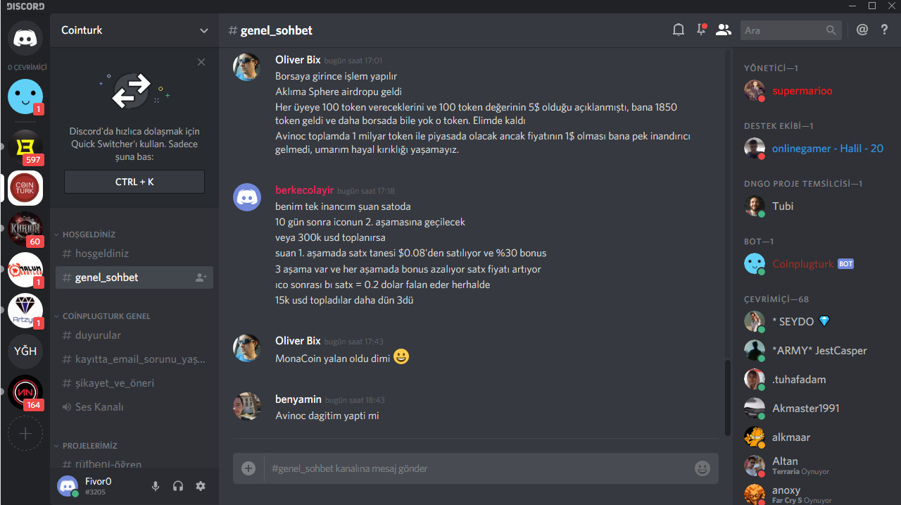 Cointurk discord kanalına katıldım sizlerde https://discordapp.com/invite/JYpGYqm linkinden katıbilirsiniz.