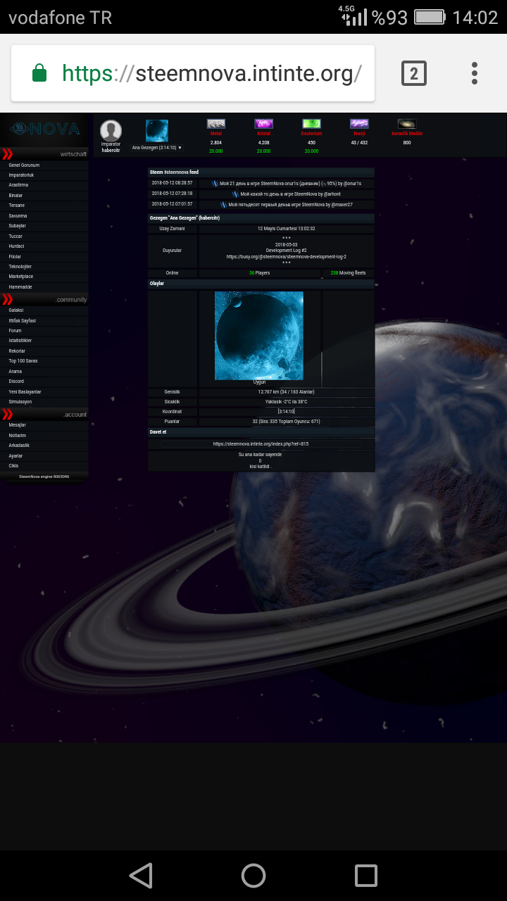 Steemnova oyununda 2. günüm de hesabimi gelistirmeye devam etmekteyim. 34 puanla 341. Sıraya yükseldim araliksiz olarak gelistirmeleri yapıp bi an önce savas filolari mi hazirlayip savaslara katilmayi planliyorum.
