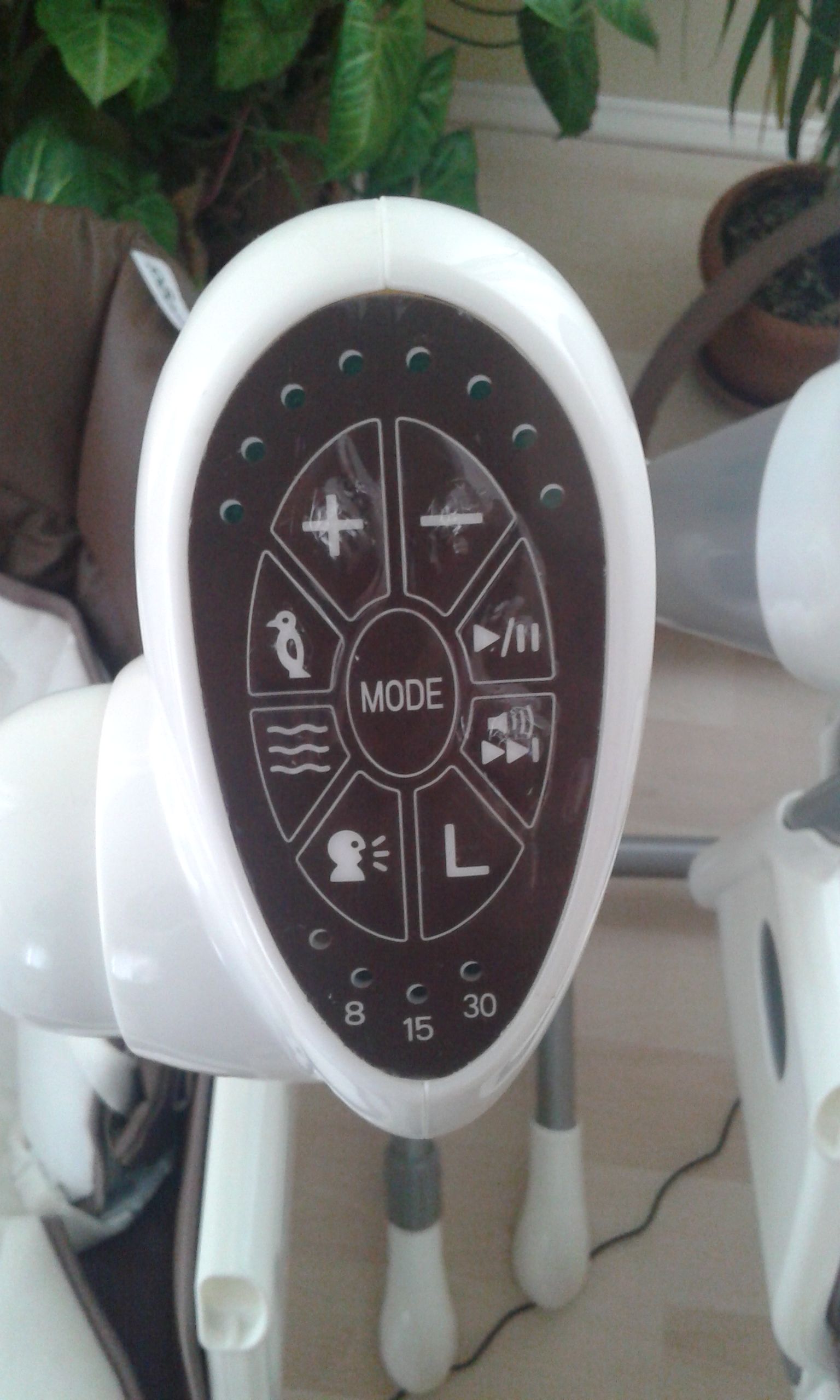 Salıncak üzerinde bulunan tuşlarla kendi hafızasında olan melodi ve doğal sesleri çocuklarınıza dinletebilir yada usb sayesinde istediğiniz melodi yada şarkıyı bebeğinize dinletme şansını yakalayabilirsiniz. Aynı zamanda bu tuş takımı ile hızlı ve yavaş sallama seçenekleri mevcuttur. Bir diğer özelliği ise telefonunuzdan da kumanda yapabilirsiniz.