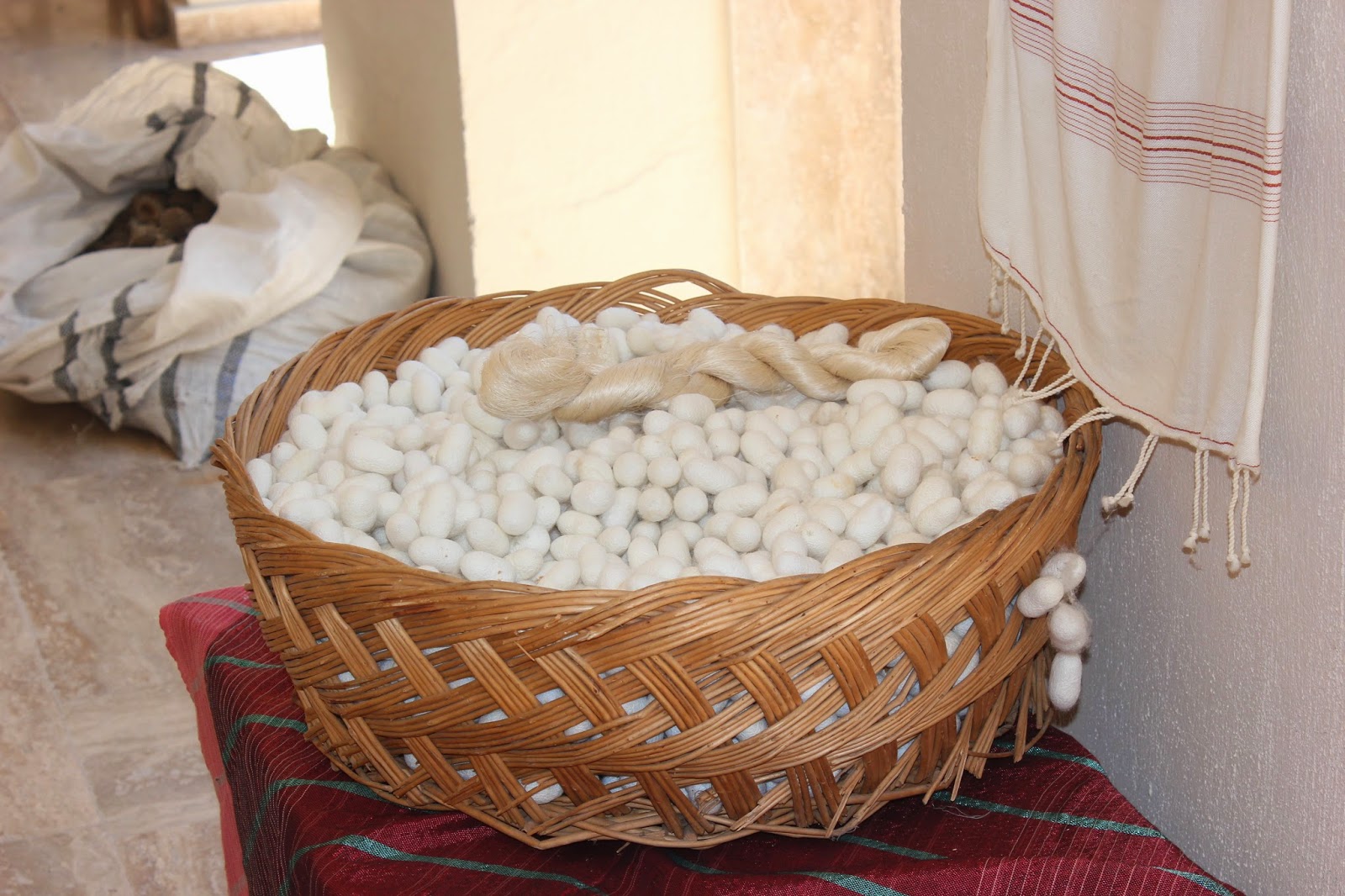Burada ise yukarıda sözünü ettiğim ipekten yapılan ürünlerin sergisi bulunur. Has ipek böceğinden üretilen iplikler boyamaya alınır ve ardından işlenmek üzere Kasnak Makinesi ile üretime gönderilir. Bizlere ipek şal olarak sunulur.