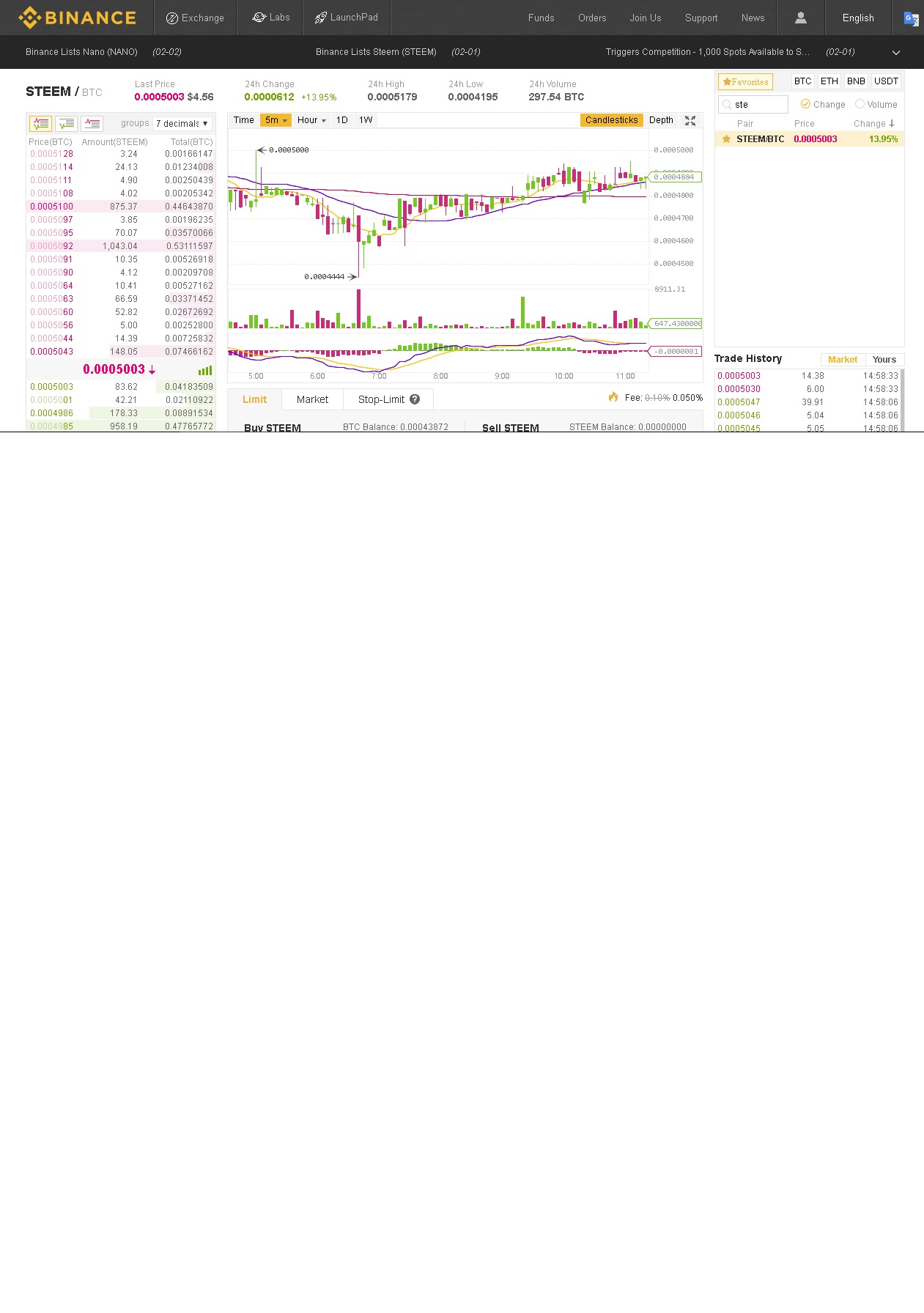Dünyanın en büyük kripto borsalarından biri olan Binance, steem ve xrb ( Raiblocks) coinlerini sistemine dahil etti. Kullanıcının uzun zamandır beklediği XRB ( Raiblocks ) Binance borsasında NANO ismi ile işlem görme başladı.