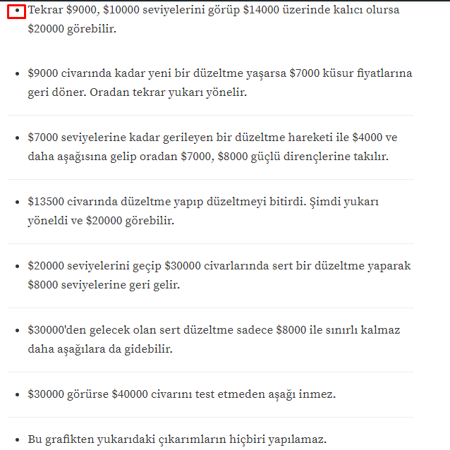 - Dirençler: $10000, $11610, $11984, $13014, $14618,$16646,$17221, $19160, $19686,23000