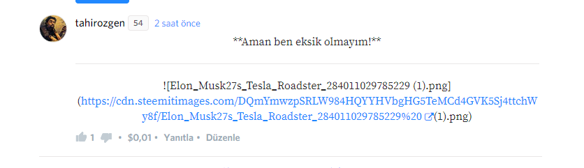 Bakınız @turkcebilim'in son postunun altındaki yorumum Steemit'te gayet düzgün görünürken;