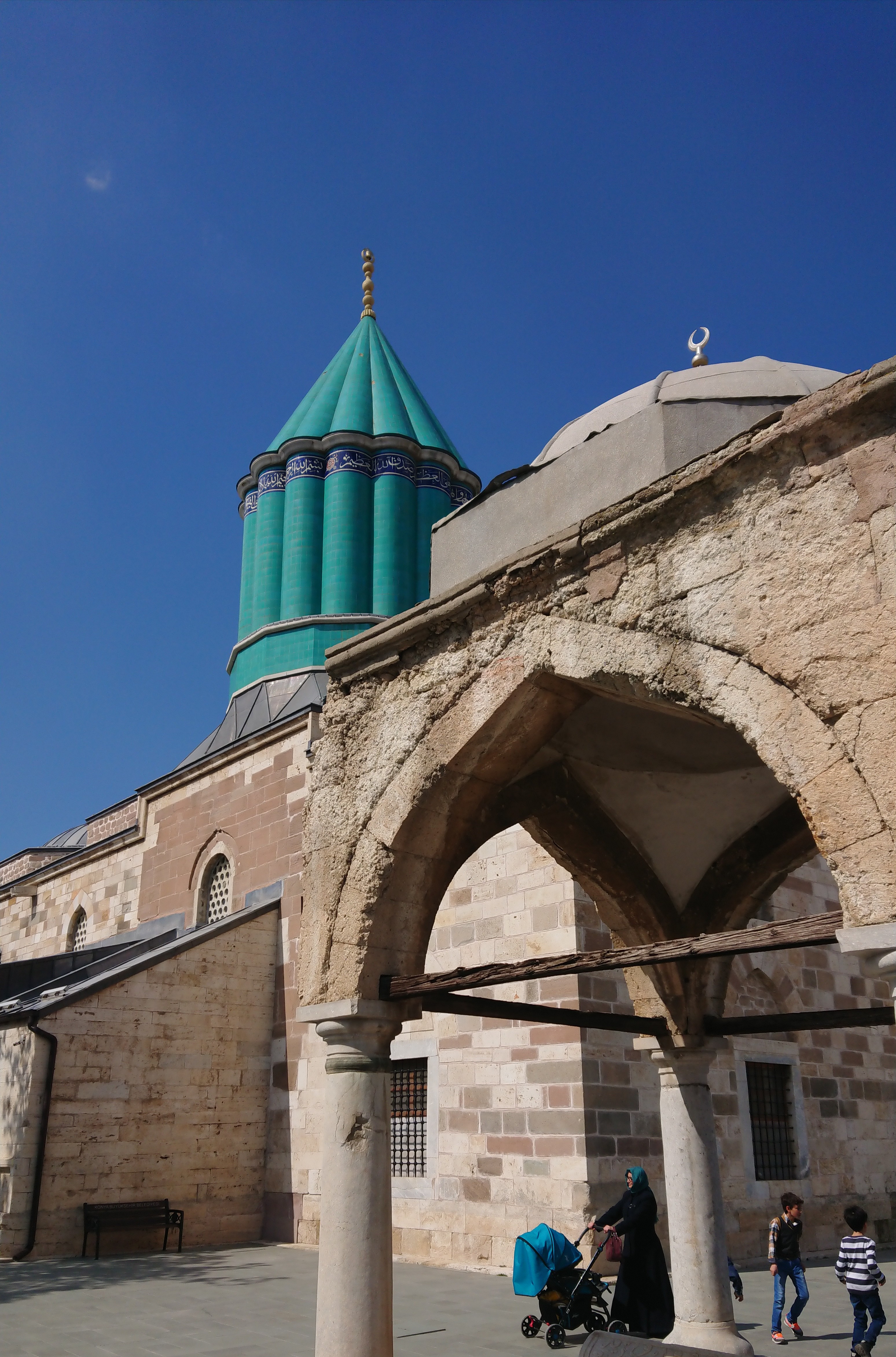 Ömrümde bir kere yolum Konya'ya düştü onda da Mevlana Türbesi'nin kapalı olduğu zamana denk geldik, hemen yakınında bulunan Selçuklu zamanından kalma camiye girelim istedik o da restore ediliyordu şansızlık mı dedi biri 😃