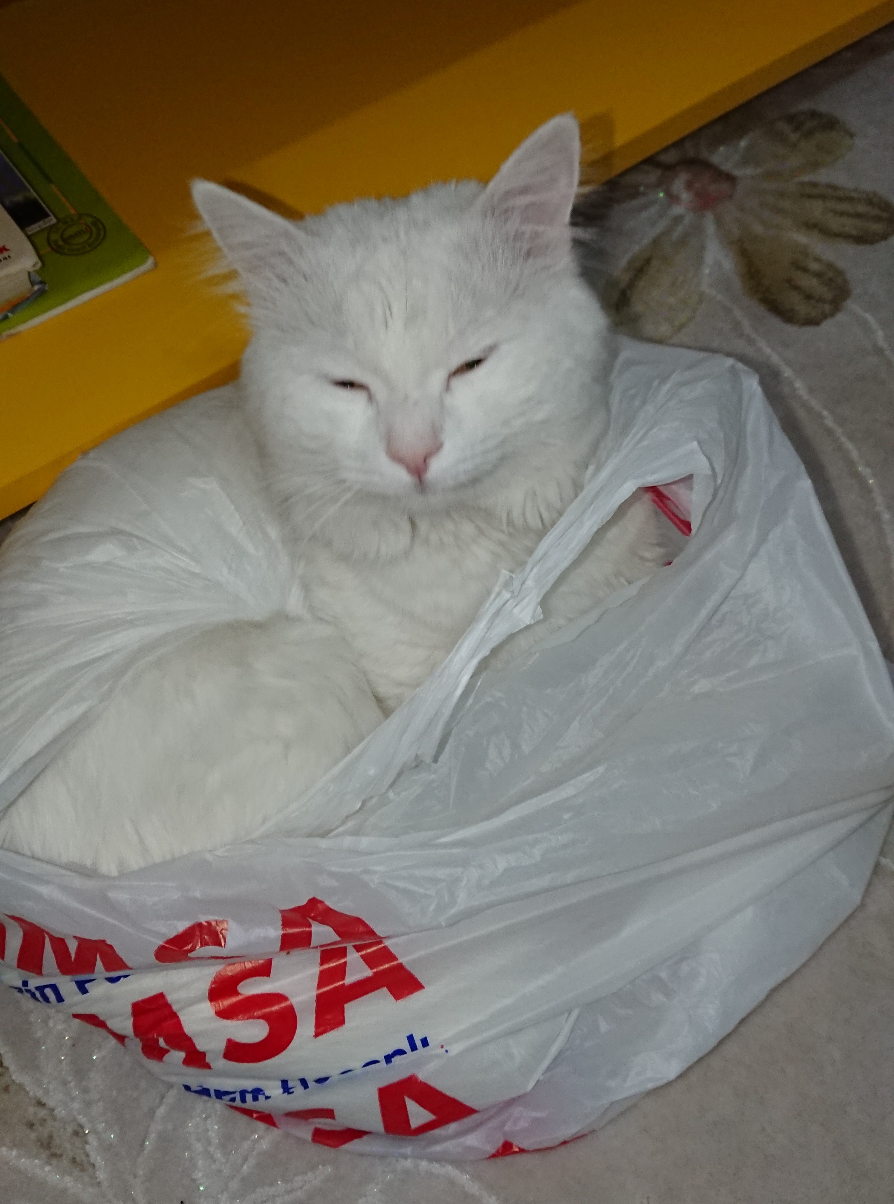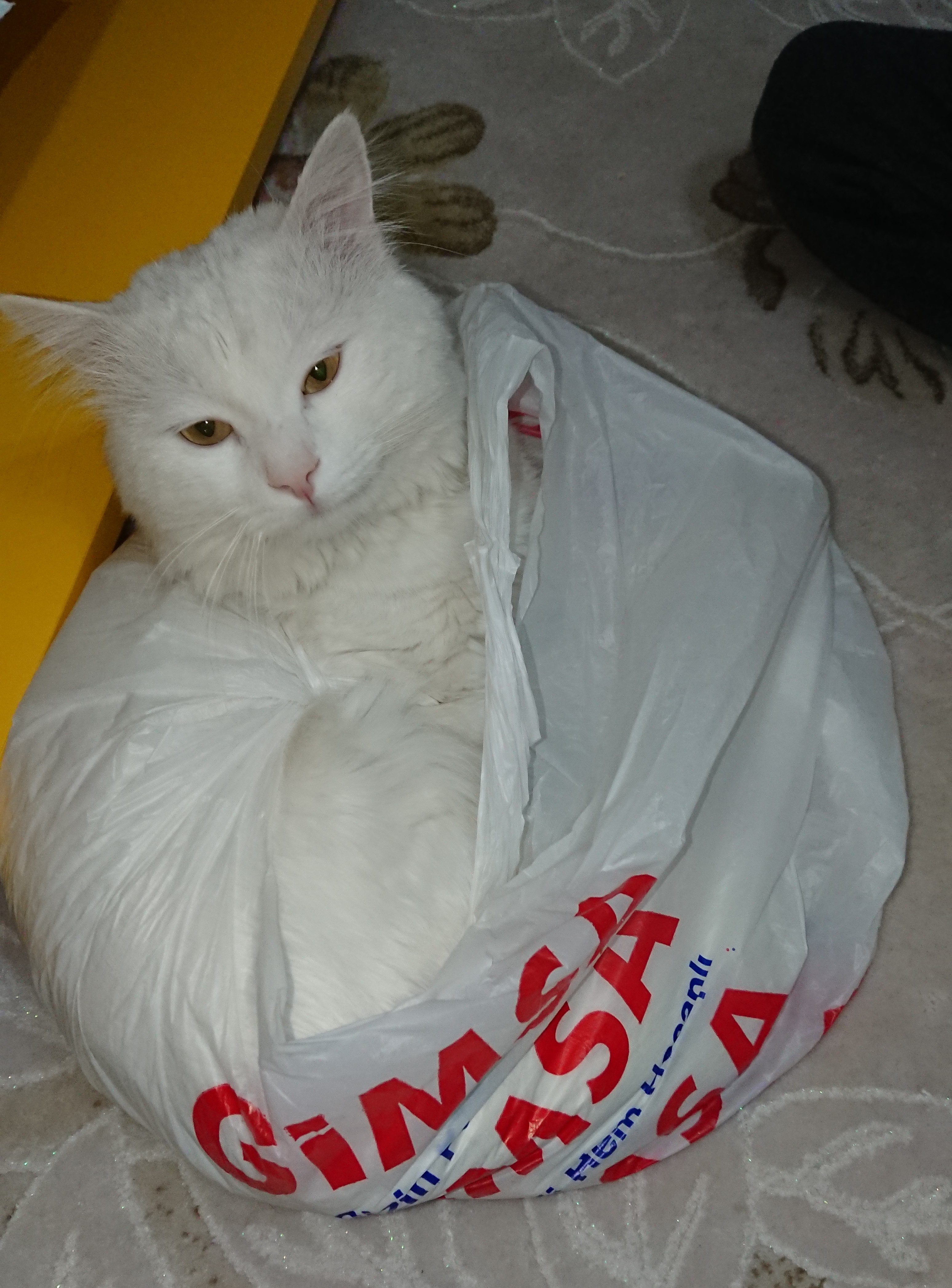 Poşette kediler için güzel bir hobiymiş gibi geliyor bana (: onunla oynamaları, ilgi dıymaları falan 😄