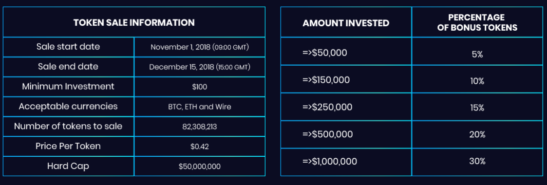 ICO satış başlangıç tarihi 1 Kasım bitiş tarihi ise 15 Aralık olarak belirlenmiştir. Yatırım yapmak isteyenler için şuandan itibaren 24 gün gibi bir süreleri bulunmaktadır.