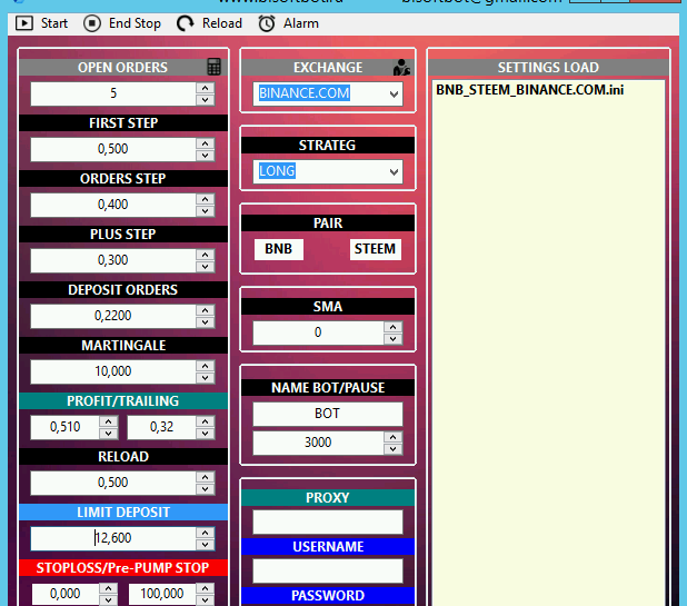 The interface itself is very straightforward and, according to the instructions sent, it is mastered pretty quickly. But still, so as not to make mistakes, I asked the guys to help with the settings of the selected pair. I chose BNB/Steem as I’m more familiar with this market and the volatility of the pair is suitable for the operation of the robot.