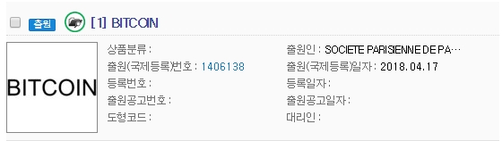 그럼에도 아래처럼 2018년에도 "BITCOIN"을 출원을 한 회사가 있다.